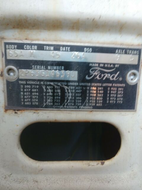 This is a 1962 Ford Galaxy 500, 406cid 405HP, 4 speed, 4:11 car! THIS CAR IS BEING SOLD ON A BILL OF SALE ONLY, THE TITLE IS MISSING. If this is a problem for you, PLEASE DON'T BID!! This is a true g-code 406, as pictured below, the trim tag plate VIN and the frame stamped VIN match.The car is actually in pretty good shape. The drivers front floor pan, and passenger rear floor pan will need replaced. The passenger front floor pan has a pinhole in it. There's a small spot on the passenger side c pillar of the roof (pictures included), other than that it's solid. The trunk floor is very nice shape, as is the rocker panels and body mounts. As shown in the picture I do have the seat frames, but they are rough. All the glass has been broken out of it except the passenger rear side glass.It does appear that the front clip was replaced at some point, because there are no holes for the 406 emblems, but has no visible structural damage. Unfortunately, I do not have a whole lot of history on this car other than it's been sitting in a private collection for many years And there is a dealer sticker on the trunk lid from Sweet Home, Oregon. However, with having no DSO number, no power steering or brakes, 4:11 gears, and being Corinthian White, with Red interior, I'm guessing the boys at Ford built this car with the intention of it being driven 1/4 mile at a time! With that being said, and to avoid answering a bunch of questions, I do not believe this car is one of the missing lightweight cars, simply because it was built at the Twin Cities Minnesota plant, has a heater and other things a lightweight would not have.This car deserves a proper restoration. 406 cars don't grow on trees!! The 63 XL in the pictures behind it is also a G code and I can't afford to build both of them. I always allow ample time for pickup, however FULL AUCTION PRICE MUST BE PAID IN FULL WITHIN 7 DAYS OF THE AUCTION ENDING. I also reserve the right to end the auction at any time. Thanks!The Door Tag decodes as followedBody 65A--- Galaxie 500 Club VictoriaColor M--- Corinthian WhiteTrim 45--- RedDate 26A--- January, 26 1962DSO--- BlankAxle 9--- 4:11Trans 5--- 4 speedVIN tag decodes as followed2--- FordP--- Twin Cities, MN63--- 2 dr Club VictoriaG--- 406 CID/405 HP 146309--- Sequential Car BuiltOn Mar-09-22 at 15:06:29 PST, seller added the following information:I apologize but I forgot to mention that there was no engine or transmission for the car.