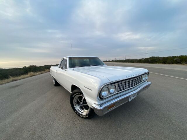 Brand new Chevy crate engine (355) with 14,448K miles on it. Auto transmission fully rebuilt within the last year. Brand new CPP front disc brakes with large power booster. Stops on a dime. Drum brakes in rear. Brand new 15" American Racing mag wheels with brand new Cooper Cobra Radial tires. Brand new battery less than 2 months old. Brand new wiper blades. Brand new hoses, alternator, headers, glass packs, gaskets plugs, wires, 4-barrel carb, some new wiring and bulbs. New power steering pump, belts and tons more. This is a daily driver. It's driven or started every single day. Guaranteed you'll never see another 64 or 65 El Camino on the road in as good of condition or as reliable. All receipts of work done since we've owned it as well as the info on the shops that did the work are on hand as well. I have video of the car driving and starting as well. It's a daily driver and super reliable. Asking $35K OR Best Offer.Serious inquires only. Don't hesitate on this, it's not going to last long.If buyer wants vehicle shipped or transported, they must arrange for pickup and pay all shipping/transport costs. Otherwise, pickup in Austin, Texas area.