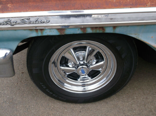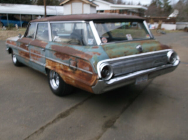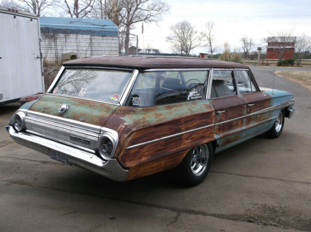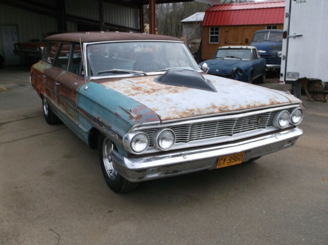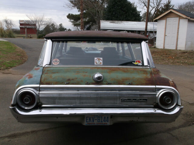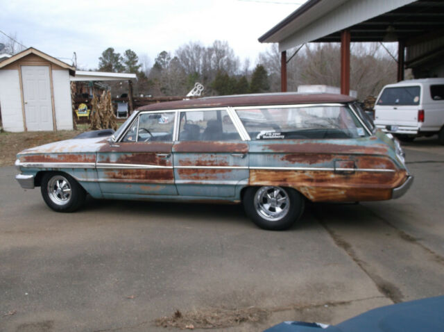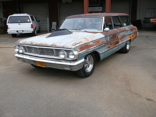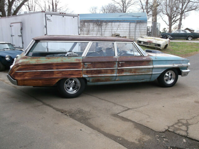 1964 Ford Country Sedan wagon 4 door W/rear gate , manual rear window in gate , The underside was cleaned & painted Black , The complete frt end was removed taken apart , The rad support & fender wells engine fire wall & Frt Snout were all sand blasted& primed W/Self Etch then painted W/acrylic Enamel W/urethan hardner in Semi Gloss Black then reassembled with drive tran. out , The engine bay is very nice . The outside of the car retaines it`s original patina . the frt floor pans were replaced & the Qtrs have been replaced before , The rest of the car retaines it`s original panels W/the Original paint or primer on some areas . The engine is the Original Big block FE engine which has been completely rebuilt with all new components , Bored 0.30 W/10-10 crank , competition valve job all new valves spring retainers locks to match up with Mild Solid Lift Howards cam & Roller Rockers , Edlebrock aluminum intake W/650 Quick fuel carb . Tall blk wrinkle finish valve covers w/spacers to clear Roller Rocker assemblies . Engine was built very close to For PI engine specs . Aluminum Radiator W/Aluminum Expansion Tank , MSD ignition . Borg Warner 4-speed trans. W/original Shifter , Trans. is good BUT Shifter @ little sloppy from age & ware . NEW Clutch , 15x6 Crager S/S wheels on frt 205/75/15 , Rear 15x10 Crager S/S 275/60/15 tires, Front wheels New Rear wheels used , No money was really spared on this build for I wanted it to be dependable with well over $20,000.00 invested , I quit counting , Lots of Cash & Labor time . Any other Questions or concerns please ask , Drives & rides great , Everybody loves it , Thumbs UP & Big Smiles , Have other projects to finish ! This car is sold as is where is with no warranty or guaranty offered or implied what so ever . Buyer responsible for shipping , Thanks for looking & good luck if Bidding ... 919-690-2778 Mac