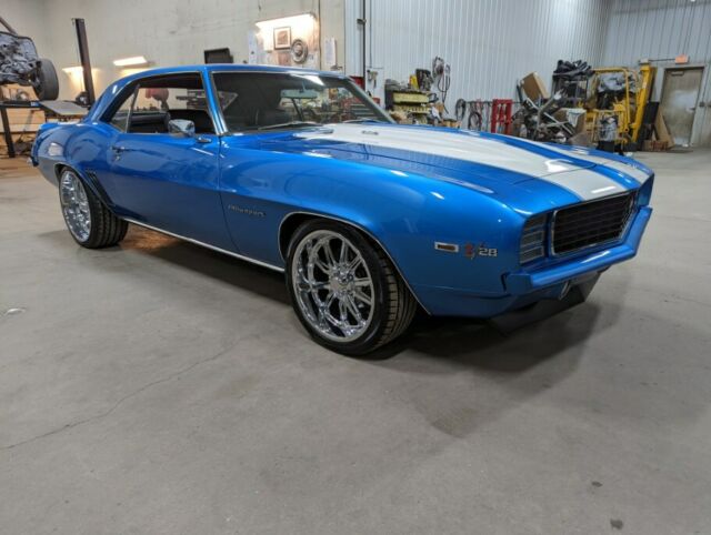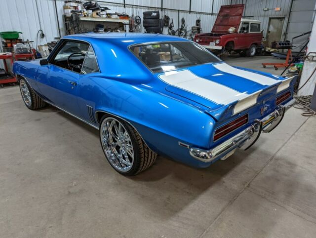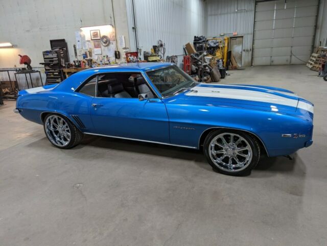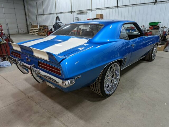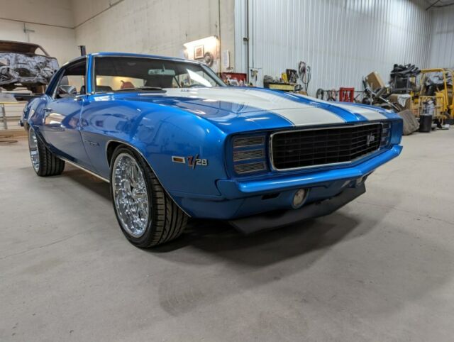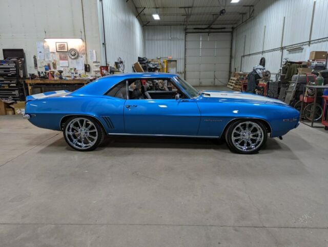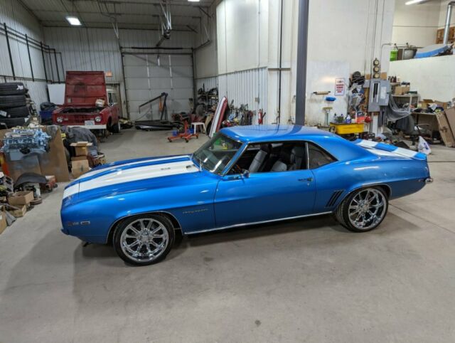 1969 Camaro Restomod**Many more pictures on our website at www.aamusclecars.com-SHOW QUALITY, Flawless Lemans blue paint. The paint and body on this car are ABSOLUTELY STUNNING!!! The white stripes are buried deep in the clear with no ridge. Body is LASER straight looking down the sides. An absolute masterpiece!!-LS3/6.2L GM Crate engine-GM control system and engine harness-Tremec TKO600 5 Speed manual transmission-Mcleod Hydraulic clutch -12 Bolt posi, 3.55 gears, Aluminum back bracked ultimate cover-Vintage AC and Heat surefit kit-Dakota Digital Cruise Control kit-Power Wilwood disc brakes with wilwood adjustable proportioning valve-Power steering-Nu-Relics power windows-Hotchkis tvs suspension-Hotchkis front anti-roll bar-FOX shocks -Energy suspension urethane kit-Detroit Speed RS electric headlight door kit-Endura front bumper-Octane Lighting LED headlights-Retrosound digital radio with XM radio and bluetooth-Killer sound system with Boss amplifier suppling two subs and the rear 6x9's. Has speakers under the dash up front as well. Sounds incredible!-Tilt wheel with Rosewood steering wheel-Extremely nice black with houndstooth bucket seat interior-LED interior lighting-3" X-piped exhaust with stainless Magnaflow mufflers all the way out the back and out each side. Sounds awesome!! Not too loud and not too quite!-Dynatech Muscle Maxx ceramic coated 1 7/8" headers-Chevrolet Performance LS Serpentine Belt drive system-Holley accessory drive brackets-Aluminum radiator with Spal fans-Braided brake lines-Optima red top battery with relocation trunk kit-US Mags Rambler Chrome 20" rear and 18" up front to give it that killer Restomod stance!-Chrome and stainless trim are flawless!**THIS CAR IS ABOUT AS PERFECT AS THEY COME! IT'S AN ABSOULTE BLAST TO DRIVE AND GETS LOOKS EVERYWHERE IT GOES. A TRUE SHOW STOPPER!!! GET IN AND DRIVE THIS CAR ANYWHERE ALL WHILE IN COMFORT AND GOOD GAS MILEAGE!!! COME TAKE A LOOK AT THIS STUNNING RIDE!*WE WORK WITH MANY CLASSIC CAR FINANCE COMPANIES THAT CAN PUT THIS GORGEOUS CAMARO IN YOUR GARAGE. YOU CAN APPLY RIGHT ON OUR WEBSITE ATWWW.AAMUSCLECARS.COMCall or text7o1-3o6-9424A&A Muscle Car Motorsports LLC705 Main Ave EWest Fargo, ND 58078