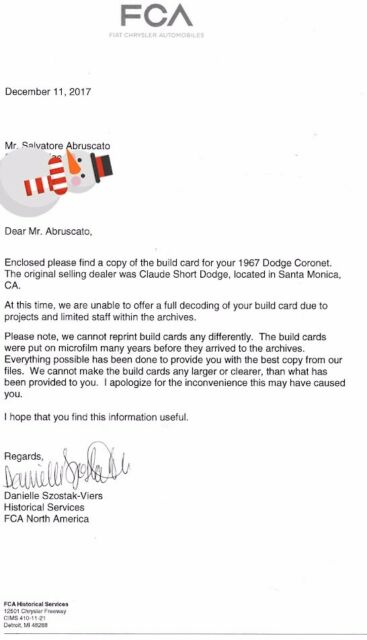 1967 Dodge Coronet Model 440 built in the Los Angeles Plant sold in 1967 out of Claude Shorts Dealership in Santa Monic CA in 1967383 Big Block no matching but period correct with 727 Torqflite, rear end is open grip. Copy of IBM Card and Letter from FCA ArchivesUpgraded Front Disc Brakes, New Rear Drum BrakesAll new Suspension front and rear, every bushing replaced, rebuilt lower control arms, new upper built control arms, Mopar performance leaf springs with Hotchkis Shackles. New KYB Shocks in front and New Gibraltar Air Shocks in rear.New gas tank, New sender, Stainless Steel 3/8 fuel line, new Fuel filler Tube and vent tube to tank. Trunk pan solid original no rot!TTI Headers Nickel Coated with Pypes Stainless Steel Exhaust, Violator Mufflers. Re-Chromed Original Bumpers, All new bulbs, head lights with Old School Super Stock High Beams, Robb MC Mini Starter,Auto Meter Tach, Oil, Water, Volt gauges, New engine Harness, New Rear Axle SealsNew Fuel Pump, Edelbrock AVS Carb, Mopar water pump, Champion Aluminum Radiator, Borgeson 14:1 Power Steering, Hemi Bendix Power Brakes, Mopar Performance Valve Covers, Pertonix Distributor Electronic Ignition, New OE wiper blades, New carpet, Interior Mint Condition White Pearl, Original Vinyl Top, Hercules 4000 staggered tires with Torque Thrust style Rims, Poly OE Style Spare Tire, Runs strong and is a show stopper. I can keep going I love the car dearly, worked very hard on her but due to economics I must thin the herd. Dash has no cracks all dash lights work, New rear package tray, Not a single tear in seats. Has one small cut 1 inch on driver side original interior door panel, New Weather Strippings Doors Roof Rails and Trunk Seal. No Salt, No Rain, NO Rust! This car was born and lived most its life in California and is Garage kept here in Upstate NY only driven 60-100 miles a year in Spring and Summer.