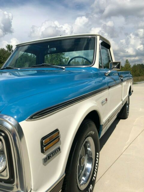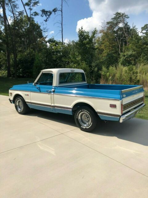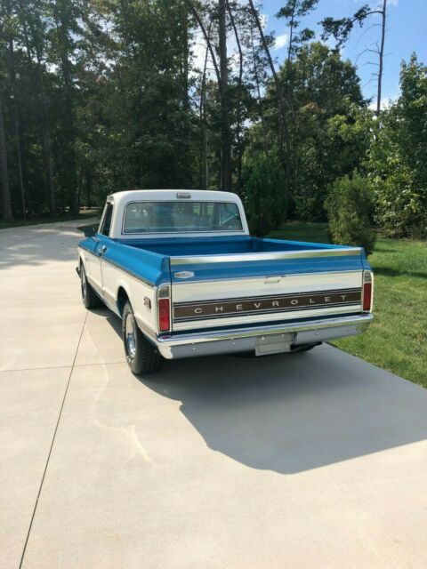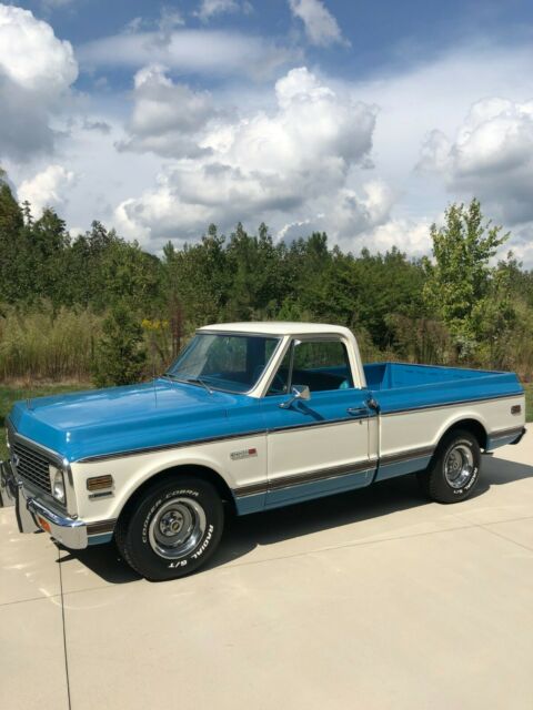 @import url(https://fonts.googleapis.com/css?family=Roboto); Vehicle Details This Factory 1971 C-10 Short Wheel Base Fleet Side Cheyenne has original 350 V-8 with matching numbers 4 -barrel quadra jet completely rebuilt. This amazing 1971 C-10 is sporting under 23k original miles. This Truck has just completed a Body Off Restoration that included every nut and bolt and clamp. Highly detailed and returned to factory specs as close to as possible. Restoration took place in 2021 with a rust- free southern truck. Body features a desirable two-tone paint (blue and white) with wood grain molding. The paint shines inside and out and has very good body gaps along with very straight body panels. Suspension has been lowered with 2â coils all the way around. Truck has Power brakes and Power Steering. Cab sports a bench seat recovered to it's original state, with new carpeting, new steering wheel, original radio, new head liner and so much more. All door Seals have been replaced. All Fluids have been Changed. Every Part on this truck has been refurbished or replaced where needed. This 1971 will command a lot of attention, it is difficult to find such an original C-10 sporting matching numbers components along with items such as Spare Tire and Carrier, Jack and Factory decal, Door Vin decal, Unmolested Vin plate Rivets and so on. As you can tell by the photos the level of detail that has gone into the truck along with over 600 hours of labor is evidence in the final product. IF YOU HAVE ANY QUESTIONS INTERESTED BUYERS ONLY "NO TEXTING" CALL 980-439-7978.NOTE: For anyone interested in making this an automatic I have a Turbo 350 Transmission that is completely rebuilt and a new Torque Converter . I also have a stock factory Transmission cross member and in addition I have collected most of the components to change it over, except for a steering column. For the Right Deal these components can be included. Images Download the eBay Motors app