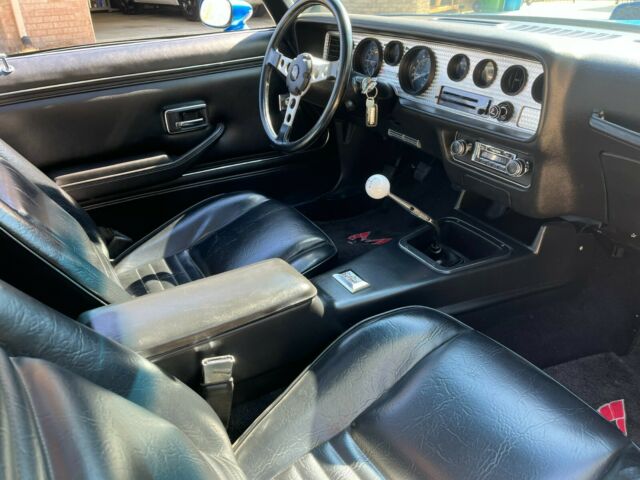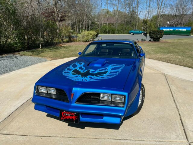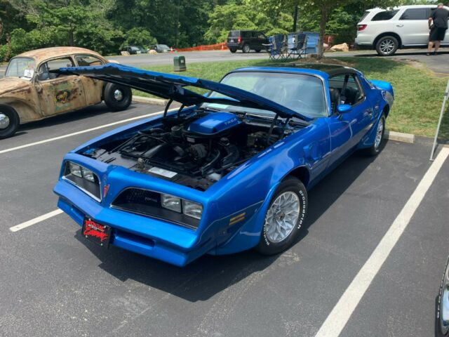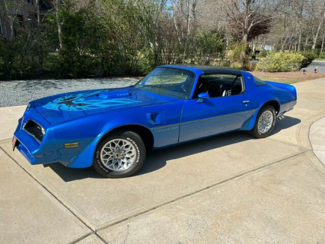 3 owner car, sold new in Atlanta, second owner took it to Northern CA, I bought it restored it in 2013/14 and brought the car with me to NC from Southern CA. During restoration, Car was media blasted and rust was limited to a pinhole in floor board. Cars/Concepts T Tops (dealer installed back in the 1970's), 400 pontiac rebuilt by Jim Grubbs in CA with roller cam/rockers although completely stock appearing, runs perfect on 93 octane and at 180 degrees all day long. 4 speed BW Super T10 and OE Hurst shifter rebuilt by DME in Kentucky, posi rear, new battery and tires (old ones got old with age, not miles, car has only been driven less than 3,000 miles since restoration). The clutch, starter, alternator, U joints, suspension bushings, steering box and exhaust were all replaced/rebuilt during restoration. Car is Martinique Blue, a one year only color, and was painted BC/CC. Decals are from Phoenix graphics Have restoration receipts and photos and some ownership history. This car drives like new. Only thing not working : The AC system blows warm. All of the components are there and connected, but the R12 is gone. System should be converted to R134