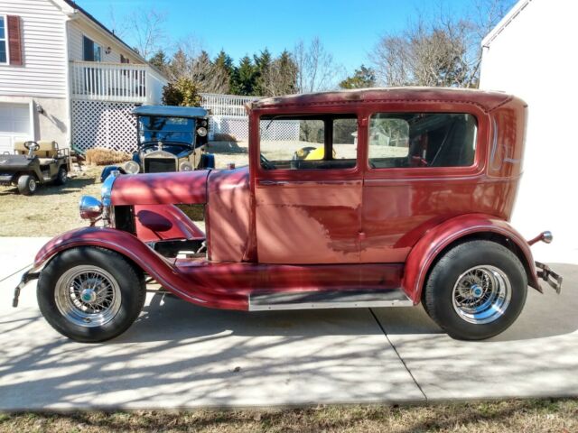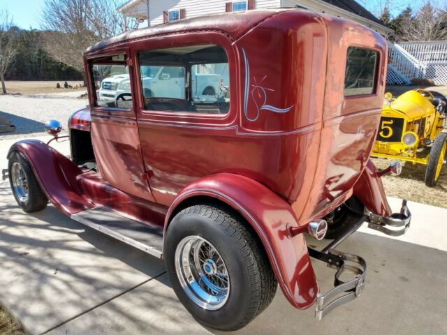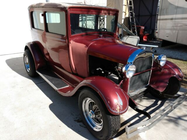 1929 Ford Model A Tudor . All steel body and fenders . Includes small block Chevy 350 and turbo 350 automatic transmission . Click the link below for video of seeing engine running . https://youtu.be/9Q1FDS_nJNM This car is a project and has all running gear completed to drop in the engine transmission and drive shaft to the already installed nine inch rear . You will need to finish the entire interior including floor pans. This is a All steel body on a complete rolling chassis which can be easily pushed into a trailer very easily. Driver's side windows are cracked and need replacing. Suaside door's with shaved handles an electronic solenoid to unlock and open it . Steering wheel, steering box and linkages are installed but will need work . Brake system is partially installed and will need to be finished. The engine is a small block Chevy 350 with a firecracker cam. And a 4 bolt main . It has a brand new Holley carburetor 650 CFI . Brand new water pump and pulleys . Brand new ceramic coated block hugger headers . Brand new starter, alternator and flywheel . The chrome package included valve covers timing cover , oil pan , air cleaner. Spark plugs , wires , distributor are all brand new . Also has aluminum engine mount that will bolt right up into the car. The engine has been bulletproofed with head studs that hold the heads onto block , instead of head bolts . Rarely seen on gas engines . Mostly seen on turbocharged diesel engines with high because of high compression . The engine serial number is a GM 3970010 . Which were mainly installed in the late 60 s Corvette s and mid 70s pick up trucks to which we were told this engine and transmission was pulled out of. It was used with low mileage . The oil pressure when you first start it was over 60 PSI . And settles in at 50 after it warms up .It has great compression and does not blow any smoke and we felt that there was no need to rebuild her . It has a Torker 2 aluminum Edelbrock mid-rise intake manifold. The transmission is a turbo 350 3-speed and comes with a Hurst ratchet slapstick shifter. The transmission comes with, new chrome oil filter cover and a Chrome inspection cover for torque converter and chrome dip stick . Both engine and transmission is included with the sale of the car and will not be separated . They also come included on their stands , with caster wheels for easy moving . The engine stand comes complete with all gauges including a JDM Racing tack. Cnspeed temperature gauge voltmeter and oil pressure.