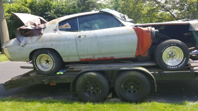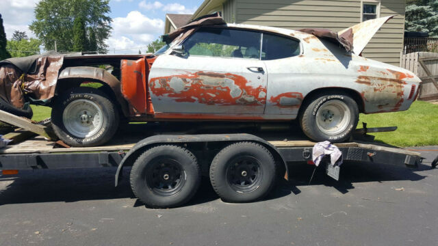1972 Chevelle originally from New Mexico with very little rust, solid trunk floor pan, passenger floor pans, doors and rocker panels. Slight rust rear quarter panels at wheel wells and âAâ pillars from vinyl top.Vehicle includes many new restoration parts including:· New GM NOS cowl induction hood including GM hinges along with every part needed to make it functional· New GM NOS fenders including OEM SS emblems, and wheel wells· New GM NOS door sill plates· New GM NOS wheel well moldings (4)· New GM NOS rear valance panel· New front disc brake conversion kit including new, master cylinder spindles, calibers and rotors· New complete interior including door panels, NOS door handles, NOS floor counsel cover plate, carpet and headliner · New rear bumper including GM SS emblems· Eaton 12 bolt posi· New Strange 373 ring and pinion· New Modine big block radiator, clutch fan and OEM shroud· New Firestone wide oval white lettered tires (5)date code 1972· Factory SS wheels with new GM NOS trim rings and center caps (4)· New SS front grill with chrome moldings· 454 motor with LS6 pistons, cam, heads, Winters intake manifold, roller/rockers (all casting numbers available)· New Hooker super comp headers· MSD ignition box, distributor and coil· New RPO F41 suspension, new GM NOS boxed control arms, front and rear sway bars, coil springs, ball joints, tie rod ends, center drag link,control arm bushings· SS dash conversion including dash pad, engine wiring harness and used gauge cluster · New Lakewood ladder bars· Complete, extra set of original tinted side glass· Original 350 engine and transmissionMany additional parts, too many to listBUY IT NOW PRICE INCLUDES THE TRAILER IT'S SITTING ON (with title)VEHICLE HAS A CLEAR TITLEAdditional photo's available pjlevinson1955@gmail.com