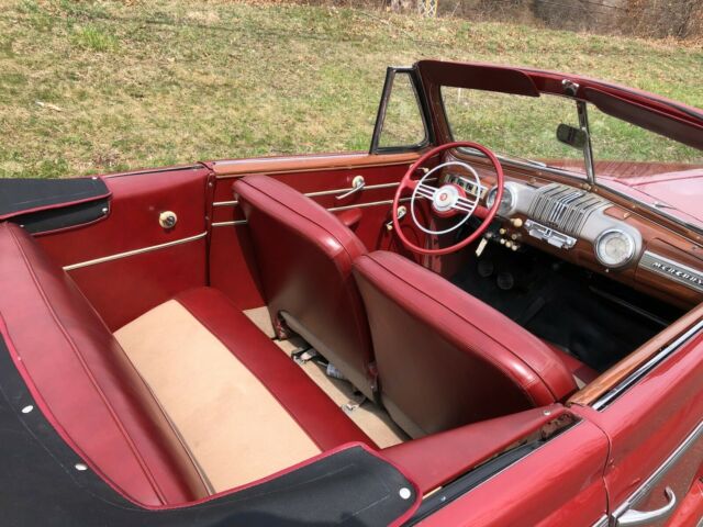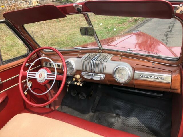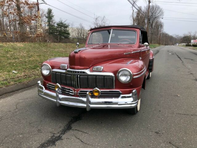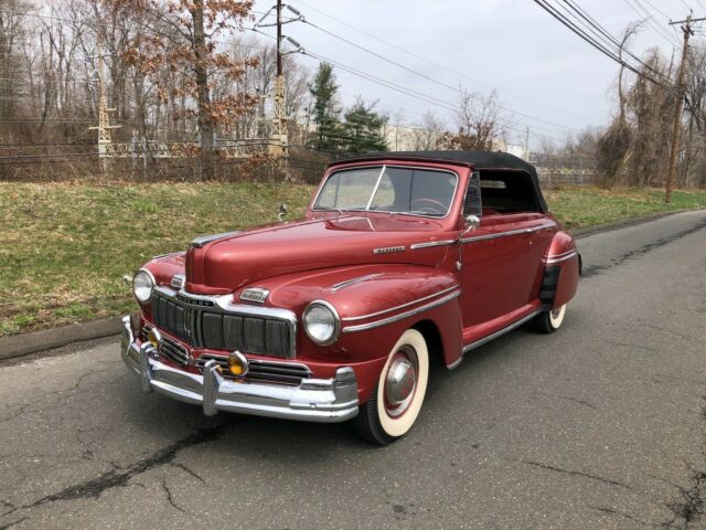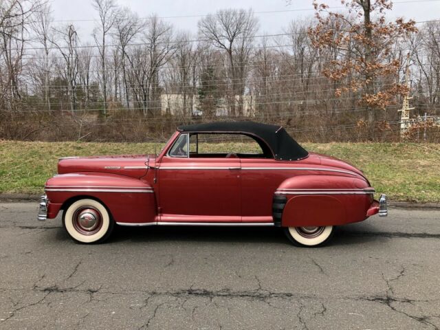This is a rare 1947 Mercury Eight Convertible Coupe. A beautiful example that is fresh from the Bobby McGowan estate here in Connecticut where it has resided in his possession for over 20 years. Prior to that, it came from a local Connecticut collector who restored the car to a high level winning an AACA junior and Senior Award in the 1990's. Today the car still looks great finished in its original and incredibly scarce color of Pirate Red with matching leather with tan cloth interior. I treated it to a cosmetic detailing as well as a new black canvas top bound in matching red leather. The top is a power top for ease of operation and it works as it should with all aspects inspected.The color is breathtaking!Mechanically we treated it to a service including a carburetor rebuild, coolant system flushing, changing of all fluids and a brake service. It runs and drives incredibly well. The restoration has held up well and is ready for top down driving this summer. It is tour ready and while it is no longer concours condition, it still likely ranks as one of the best examples extant.It is a beautiful older restoration award winning car. Part of a collection of cars that I have been selling from an estate, this gorgeous Mercury Eight Convertible Coupe ahs been in the collection since 2000. The trim is still in show condition. The paint is really nice with a few spots showing some age, but overall very presentable at any show. The interior is virtually new restored condition with its original radio, all brightwork & instruments as well as seats and carpeting looking beautiful. The engine bay is being detailed this week. The car starts instantly, runs, drives and stops exactly as a well maintained Ford of this era should. It doesn't pull and is well mannered & predictable in all circumstances. Under the car is a spotless chassis with no rust or rust repair evident anywhere. The trunk is also spotless with an older spare & jack in place. Please call if you have any questions. I am pricing this car fairly for its next caretaker. All of the other cars from this renowned collection have sold and are in the hands of new owners. I can be reached by clicking the contact seller link or calling 860-883-3998. Thanks and good luck bidding.