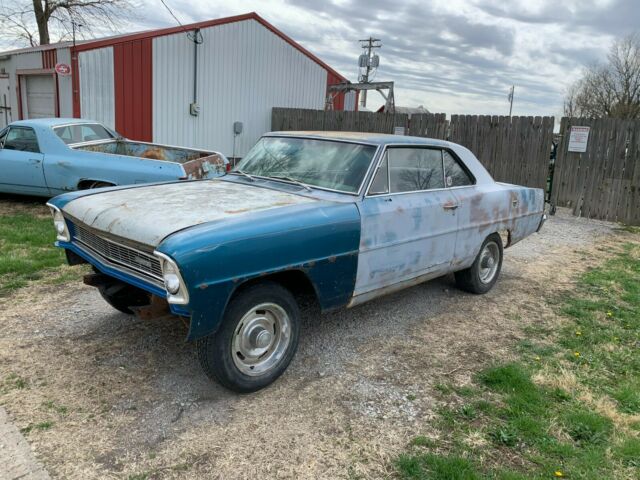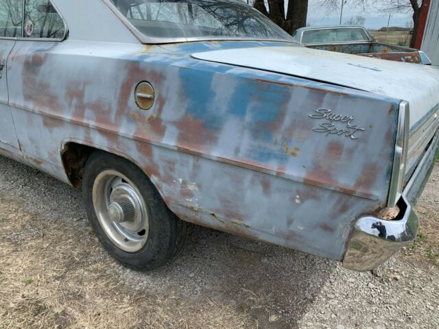 1967 NOVA SUPERSPORT (REAL 118 SS V8) NO ENGINE AND TRANS "START WITH A PEDIGREE- END UP WITH PEDIGREE" -REAL 67 SS NOVA (IN '67 VIN PROVES CAR IS REAR SS) I WILL WORK WITH YOUR TRANSPORT ( I HAVE 100% POSITIVE FEEDBACK**** CLEAN TITLE.....REAL 67 SS NOVA PROVEN BY THE "118" VIN NUMBERCAR HAS GOOD AND BAD THINGS....FRONT FRAME RAILS GOOD, FRONT APRONS GOOD , COWL ANS DASH SEEM REAL SOLIDREAR FRAME RAILS ARE RUSTY AND BOTH NEEDING REPLACED.THE FRONT PART OF CAR IS PRETTY DARN GOOD, FLOORS HAVE SOME PATCHES BUT NOT TERRIBLE, SAME WITH TRUNK (SEE PICS) REAR BUMPER BRACE AREA RUSTED THE REAREND HAS NO PUMKIN IN IT AND LEIFS SPRINGS WHERE CUT OFF WHEN I GOT IT, SO I PUT WOOD BLOCKS UNDER CAR FOR TRANSPORT PURPOSESCAR HAS SUB FRAME CONNECTORS ON IT (EASY TO REMOVE) IF SOMEONE SO CHOOSES.TOTAL PROJECT BUT 67 SS NOVA VERY DESIRABLELOOKS LIKE MARINA BLUE CAR WITH BLUE INTERIOR ! (NO DATA PLATE) CAR HAD ROLL BAR IN IT AT SOME POINT BUT CAR NOT ALL HACKED UP BUT NEEDS COMPLETE RESTROOF GOOD, ALL GLASS GOOD CLEAN TITLE STEERING NOT HOOKED UP SO ITS "KICK STEER" CLEAN TITLE AND VIN ...READY TO GO ! CALL 913-426-5379$500 NON REFUNDABLE DUE WITHIN 48HRSKansas residents will pay 7.5%