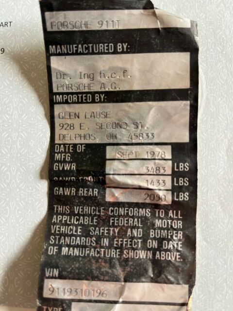 | Year: | 1978 | VIN (Vehicle Identification Number): | 9119310196 |