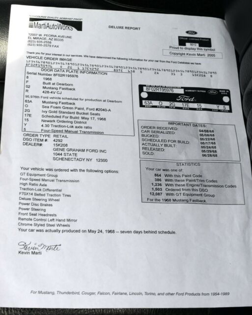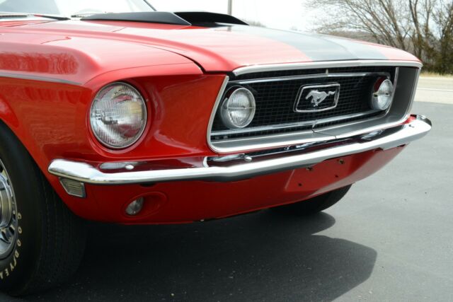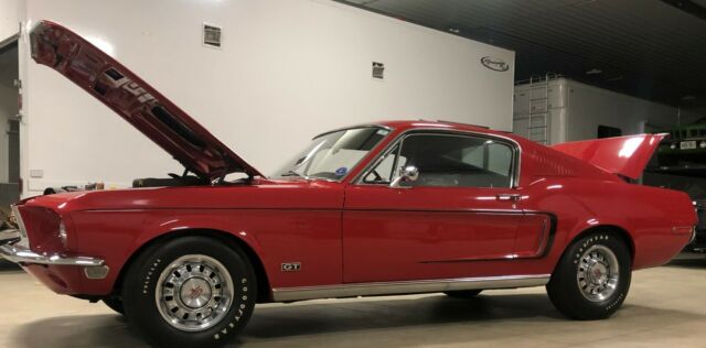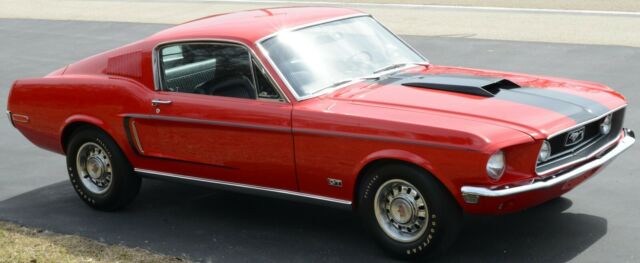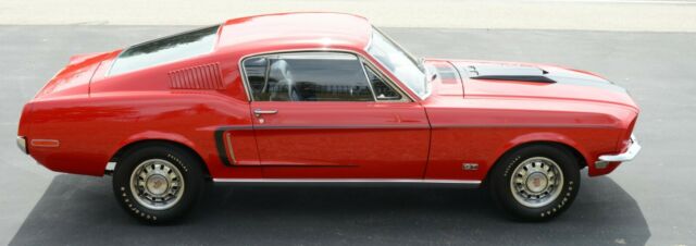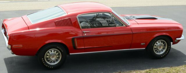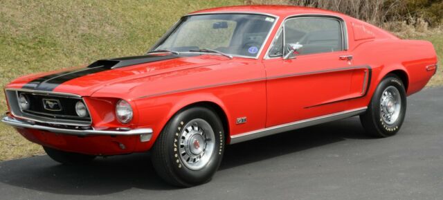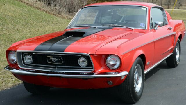 This is a RARE 1968.5 (1968 1/2) R-Code Cobra Jet 428ci GT Fastback with 4-speed and 4.30 Traction-Lok rear endCar was ordered at Gene Graham Ford Inc. in Schenectady NY with these options:428-4V CJ4.30 Traction Lok Axle RatioFour Speed Manual TransmissionGT Equipment GroupF70x14 Belted Traction TiresDeluxe Steering WheelPower Disc BrakesPower SteeringFront Seat HeadrestRemote Control Left Hand MirrorChrome Styled Steel WheelsThe car has undergone a full nut-and-bolt rotisserie restoration to exacting standards and has won multiple awards including AACA National and Grand National Winner. During the restoration, the decision was made to enhance this car's desirability by changing the factory color combination of Sea Foam Green exterior and Lime Gold standard interior to the much more desirable Candy Apple Red with Black interior.According to the Marti Report, it is 1 of 1,236 1968 Mustang R-Codes produced, and one of 1044 Fastbacks made with the 428 Cobra Jet engine. That alone would make it rare in collector car circles. But, the 1968 1/2 (1968.5) Mustang GT R-Code cars came with a specialty designed big block 428 engine with extra performance enhancers that even Shelby Mustangs did not have.Rated at 335 horsepower, it has the 4.30 Traction Lok rear axle ratio which would scream down the road with excellent acceleration and tire shredding torque. They were a terror on the race track. In fact, that is why they were produced by Ford.