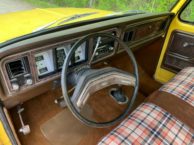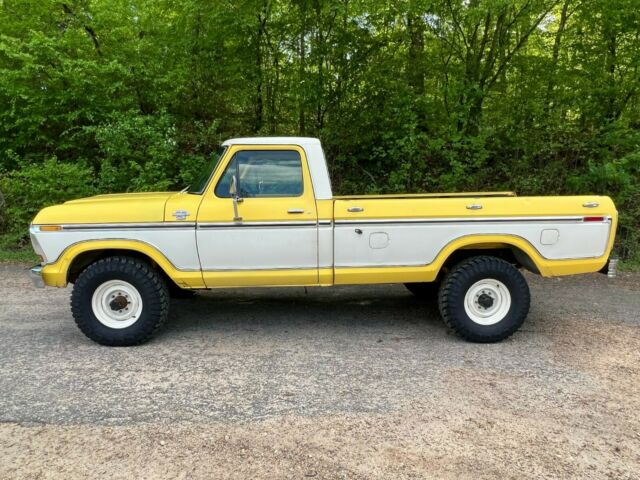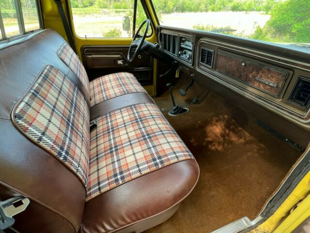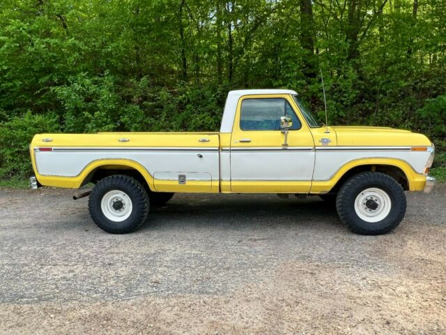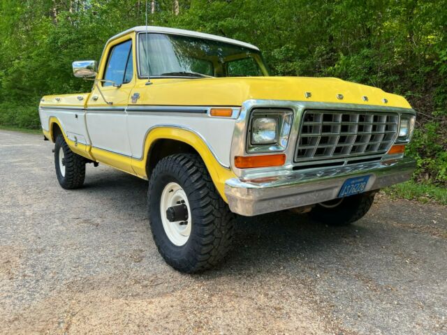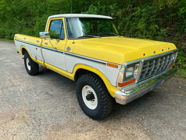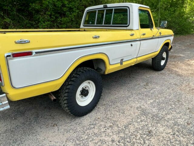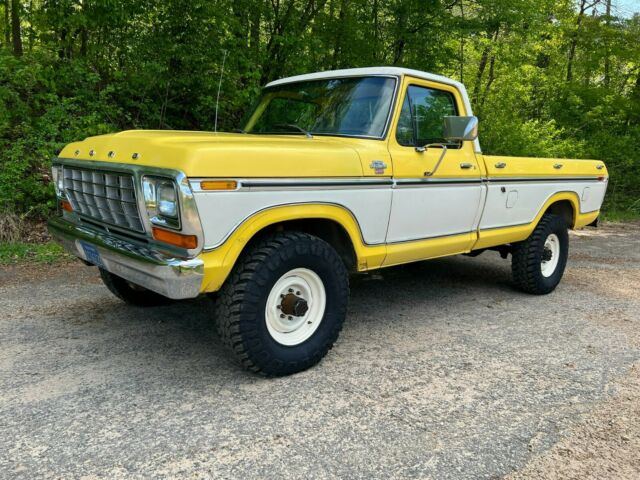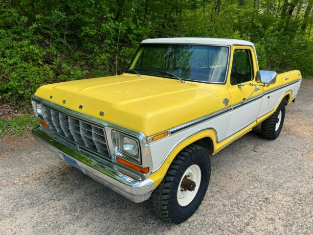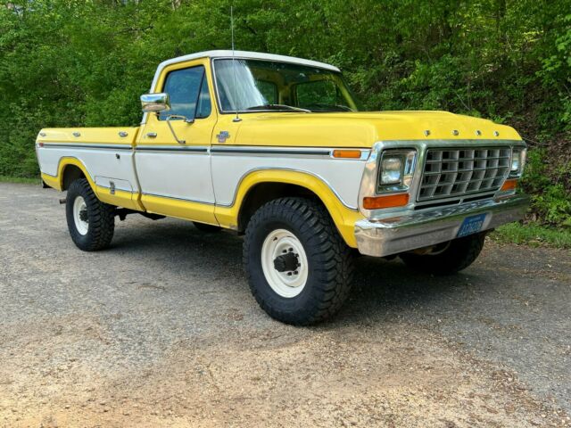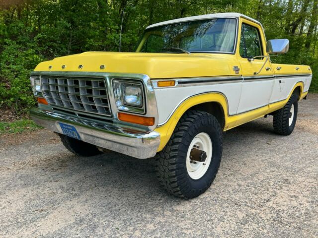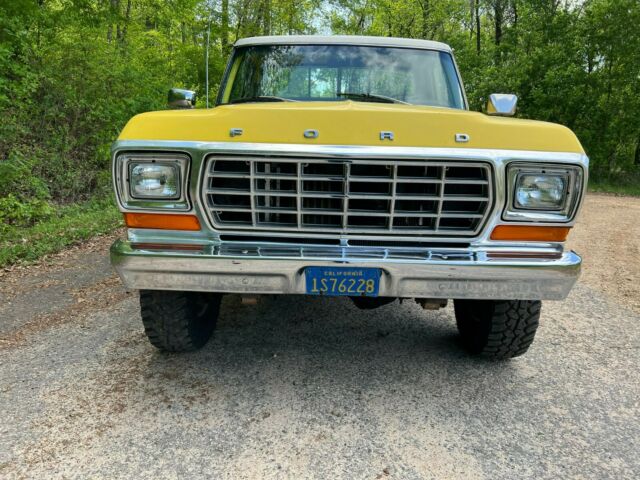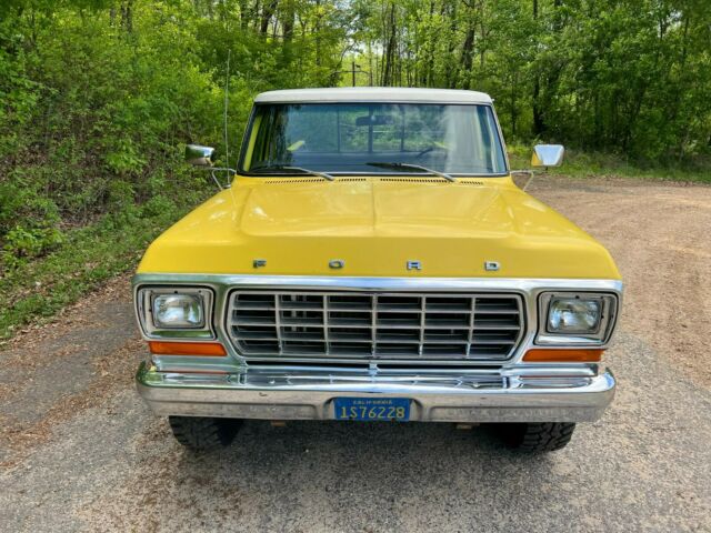 This 1979 Ford F-250 Ranger XLT 4x4 still wears its original bright yellow over Wimbledon white paint with sand interior. This uniquely optioned F-250 was ordered on March 14th 1979 and sold on August 29th of 1979 by Green Valley Ford of Fairfield California. Since then this F250 has had only two owners and covered 98000 miles. The attached Marti report shows all the options. Both itâs original blue California plates are still fit and included with the sale! This F250 is powered by its original 351 CI V8 backed by a C6 Automatic. The truck runs and drives very well for a survivor.. The Dana 44 front axle and Dana 60 rear are fit with 3.50 gears. The original A/C are still fit and works great! The original steel wheels have been refinished and fit with brand new General Grabber X3 tires. The body is rust free and all original paint except the tailgate. The paint has some scratches, dings and patina but shows great overall for a survivor. The chrome and bright work is all in good shape. All lights work as they should. The interior is in great shape! The seat has been redone in a gorgeous brown checkered pattern. New carpet has been fit. The original dash pad and door panels show well with no cracks or damage. This â79 F-250 is a great truck you can drive, enjoy and turn heads everywhere you go. Ask any and all questions before bidding.