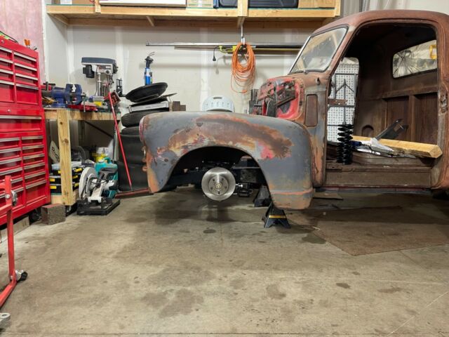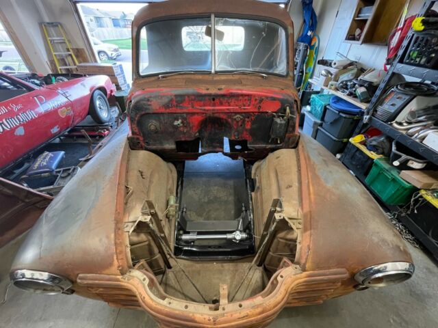 1948 Chevrolet 3100 Project. Clear title in hand ready to transfer to new owner. Has some floor rust in flat areas of the floor as they mostly all do. Small squares cut out of firewall from old engine swap in the past. Above window, rockers, corners, a pillar and b pillar, and above window all very solid. Very good for its age. Nice patina. Does have some dings. small dents. scrapes, etc as you can see by the pictures. Do not have front bumper but have rear (not mounted).The body is bolted to the frame not final fitted. Speedway mustang ii complete hub to hub with brakes heavy tacked in with miller 220 welder see pics. It can still be cut out of you want something different. TCI parallel 4 link rear suspension. Heavy tack on axle brackets again incase you want to swap rear end. I did this also to get it a roller.Its currently s10 4x4 rear axle 3.42 posi. Old school slot wheels 14" but clears the 4 wheel disc brakes. Not much else to say good project for someone. Message before bidding I want the owner happy and knowing what he or she is getting. Sold a lot of classics on eBay never had an issue. Let's keep it that way by asking what you need to know to be happy before buying.