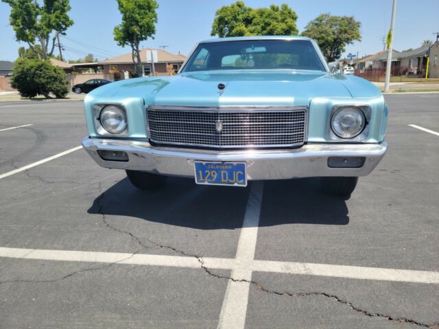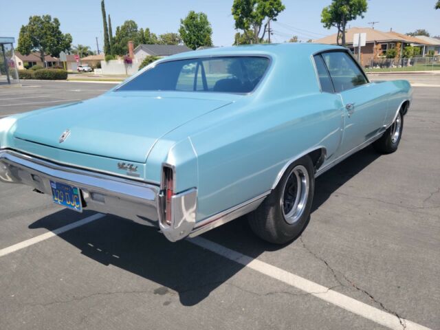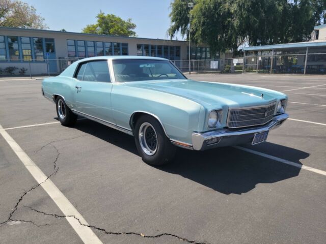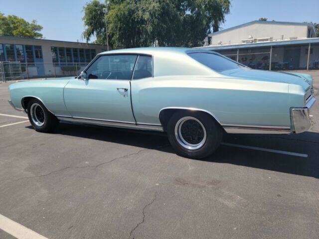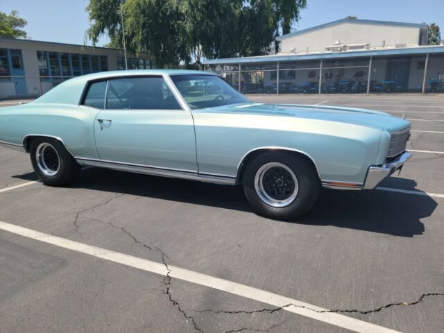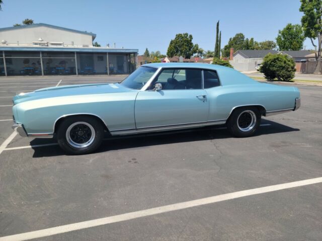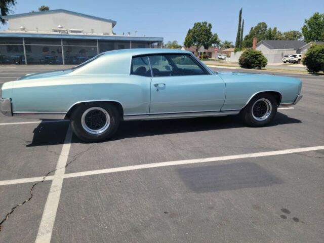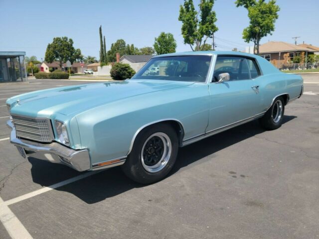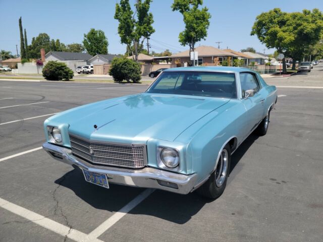 A beautiful original California classic muscle car, this is a 51 year old California 1971 Chevrolet Monte Carlo, blue plate in lovely condition. I have tinkered and repaired over time and have listed what I can below.Interior:Seats re-done in black original Custom made to fit Carpets throughoutAll panels restoredDash is free of cracksOriginal Steering wheel restoredInside Door Handles and rests renewedDoor seals/ weather stripHeadliner perforated Exterior:Paint Color - Opal 15â rally wheelsNew Front & Rear TiresAll lights, wiring checked and replaced where needed throughoutFront chrome bumpersRear chrome bumpersUnderside of car is very clean and rust free with new rubber seal Engine Compartment:Rebuilt 350 Performance engine Performance Exhaust and mufflerNew auto TransmissionNew CarburetorAll Filters, Oil, Air, fuelPlug WiresSpark PlugsDistributorNew coilNew Fuel tankNew brake master and new brakes all cornersFuel pumpAll hoses replaced, coolant lines and fuel linesRadiator Battery cablesStarter motor BatteryAnd much much more, please look at photos and ask any questions, thank you**Buyer is responsible for shipping. Car is sold as is where is and Sale is Final, No warranty, nor is any implied in the auction. Thank you so much and happy bidding!!! ** Car is also for sale locally and we reserve the right to end auction early should it sell.