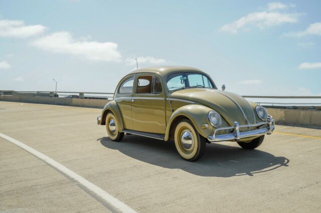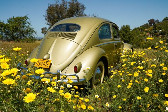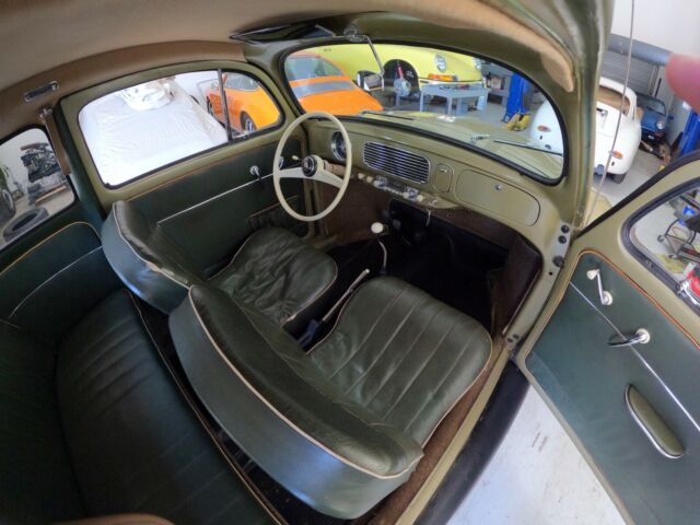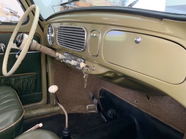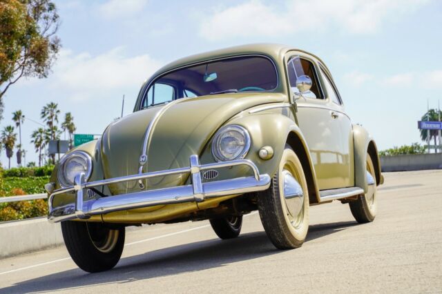 56 Oval in awesome survivor condition 85% original car with slight patina in the right way. This is what an old Volkswagen should look like - this car screams 1950s. Same family owned this car since the late 70s, this was Grandpa's car he took excellent care of it and when he passed his grandson inherited it, now time for grandson to buy a house for his new family it is being sold. This beetle is unrestored, survivor condition, it has been stored indoors hardly used for their entire ownership. Only 62,800 original miles. Beautiful Diamond Green Metallic is the original color with 1 respray done in the 70s but looks great today since it has been stored inside and hardly used. Original green vinyl interior has awesome patina. Koch restored steering wheel. 36hp engine runs strong. Suspension is incredibly smooth and quiet. Original pans and battery area! Very rust free car that has lived in California most its life - currently registered with the CSH 076 Yellow/Black original '56 plates. Major service just completed by my Porsche shop, starts up every time and is a fun reliable local vehicle - that has far less of an environmental impact than any new electric vehicle. Tire jack and spare included. (I have the correct vac advance Bosch distributor and new metal vac line, included with the car)