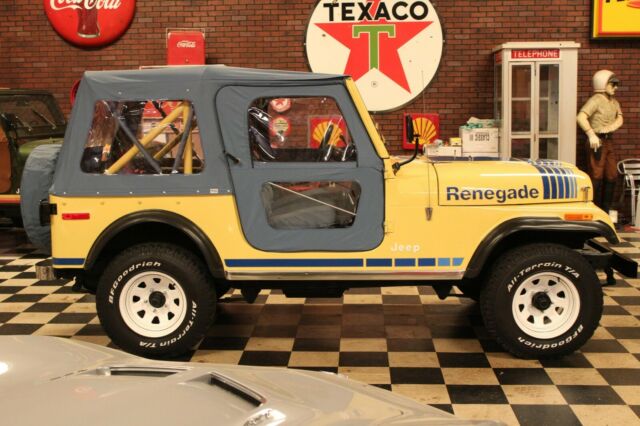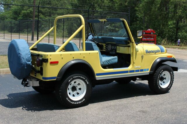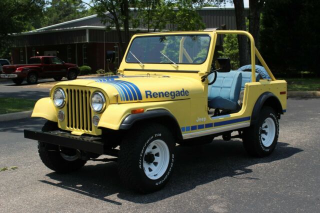 Up for sale is a 1979 Jeep CJ7 Renegade. This Jeep is dressed in color code 9L Saxon Yellow with color code 3CK Blue Denim buckets and rear seat. This jeep has no rust with only 65k miles and has been in the same family since 2007 and has been very well taken car of. Believe to be low ownership before 2007. This Jeep is stunning with one repaint and excellent original interior including extremely hard to find pieces including original seats, visors, carpet and dash pad. This Jeep also has an excellent original Whitco Denim Blue top with a nice Denim Blue tire cover and close to factory aftermarket doors. This Jeep is an automatic with the 4.2L 6cyl engine that runs and drives great. This is a great low mileage original Jeep that would be nearly impossible to recreate. Perfect Jeep for nice weekend cruises or great addition to any Jeep collection. For a better look at this beautiful Jeep please view the video below. For many more photos please see the information in the last photo of this ad. *WE DO OFFER FINANCING* For more information please call or text 334-618-7530*THIS VEHICLE IS FOR SALE LOCALLY THEREFORE THIS AUCTION MAY END AT ANYTIME*â 1979 Jeep CJ7 Renegade Video will open in a new windowUsing the eBay App? Paste link into a browser window: [isdntekvideo] .ytvideo * { box-sizing:border-box; } .ytvideo { margin:.5em auto 40px auto; max-width:480px; font-family:arial; text-align:center; position:relative; min-height:120px; background-color:#555; } .ytvideo p { position:absolute; margin:0; color:white; background-color:rgba(0,0,0,.5); } .ytvideo .yt_hd { font-size:16px; width:100%; height:28px; padding-top:6px; text-align:left; top:0; left:0; padding-left:10px; overflow:hidden; } .ytvideo .yt_ft { font-size:12px; width:100%; bottom:0; left:0; } .ytvideo img { display:block; max-width:100%; border:0; } .ytvideo a:after { content:"\A0\25BA"; position:absolute; width:60px; height:40px; left:0; top:0; right:0; bottom:0; margin:auto; border:0; border-radius:10px; color:white; background:rgba(0,0,0,.6); font-size:24px; padding-top:11px; cursor:pointer; } .ytvideo a:hover:after { background:#CC181E; } .ytvideo .yt_inp { position:absolute; top:100%; left:0; width:100%; text-align:center; padding:.5em .2em; border:0; color:white; background: rgba(0,0,0,.7); } @media(max-device-width:960px){ .ytvideo { margin-bottom:60px; } .ytvideo .yt_inp { padding:1em .2em; } }