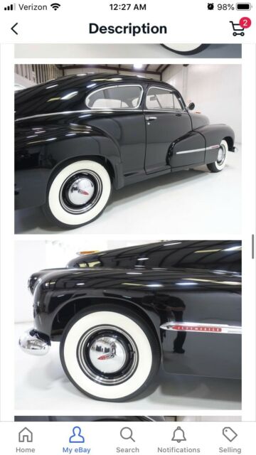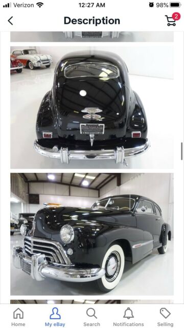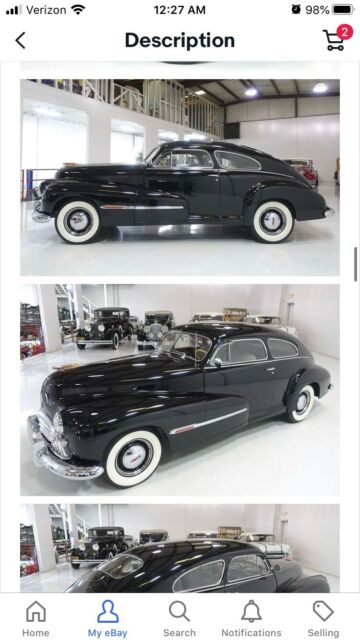 @import url(https://fonts.googleapis.com/css?family=Roboto); About this vehicle This 1947 Oldsmobile Series 60 is an original. The owner has had it for 2 years. The vehicle runs great and is mainly used for car shows. Seller's Notes This rare 1947 Oldsmobile 66 Special fastback model has a 100% original interior, engine compartment and trunk compartment. The factory equipment includes hydromatic transmission, push button AM radio, turn signals, clock, heater, chrome wheel beauty rings, twin exterior rear view mirrors, wide white wall tires and back up lights. Vehicle was owned by the same lady for 56 years. She left it in her will to the service station owner who had maintained it for her since new. When he died he left it to his daughter who sold it. Performs absolutely like you would expect of a low mileage, original vehicle. This example is probably the best to be found.$500 deposit required from successful bidder within 24 hours Vehicle Details This rare 1947 Oldsmobile 66 Special fastback model has a 100% original interior, engine compartment and trunk compartment. The factory equipment includes hydromatic transmission, push button AM radio, turn signals, clock, heater, chrome wheel beauty rings, twin exterior rear view mirrors, wide white wall tires and back up lights. Vehicle was owned by the same lady for 56 years. She left it in her will to the service station owner who had maintained it for her since new. When he died he left it to his daughter who sold it. Performs absolutely like you would expect of a low mileage, original vehicle. This example is probably the best to be found. $500 deposit required from successful bidder within 24 hours Exterior Interior Engine Download the eBay Motors app