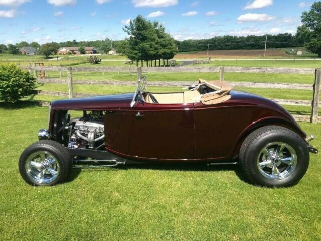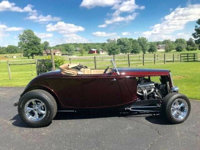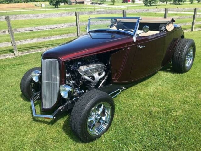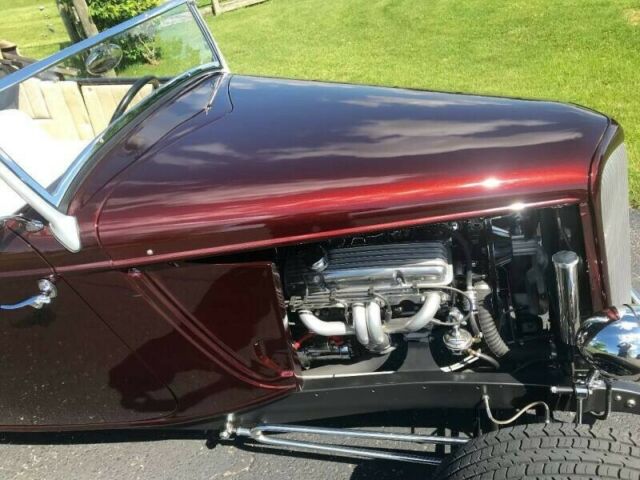 This beautiful â34 Ford Roadster with a Harwood body and TCI frame has had numerous updates over the past 2 years including:- 350 Chevy engine rebuilt with an RV cam and Edelbrock 4BBL- New SS exhaust- New convertible top canvas and frame- New tires and shocks on all four corners- New upholstery on seats and doors, new carpet throughout- Disc brakes in the front- Body sanded, fresh primer and PPG paint- Less than 700 miles since upgrades completedMore specs:- Turbo 400 transmission with shift kit- 8â Ford rear end with 3.25 gears- Trunk mounted battery with shutoff and pre-wired battery tender- Electrical is nicely put together and all electrics work from gauges to lights to the under dash heatersThe car starts every time and wouldnât hesitate to drive it on long cruises of 500 miles or more. I drove it on a couple of 100+ mile rallies last summer when the temps were 90+ degrees outside and have never had an issue with overheating. I know most everyone says they trust their car for long drives / is reliable, but I am a 30+ year classic car collector and have no reservations on this one! Iâve personally had my fair share of classics that I couldnât say this about.The paint is a gorgeous black cherry metallic (2006 Ford Toreador Red). There are two ¾â long hairline cracks on the body where the trunk closes. These are hard to see unless you are specifically looking for it. Other than that, the body and paint are in really great condition. The underbody is as clean as the topside and you can easily tell this car has only been driven on nice days and brought home if it started raining.The car does not have a windshield wiper and has a periodic drip from the transmission pan when in storage.Car has a clean Indiana title and registered as an assembled vehicle with a verifiable, registered VIN.