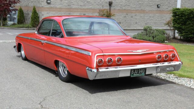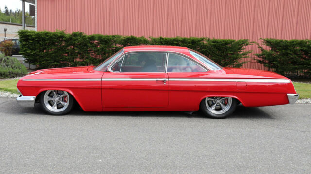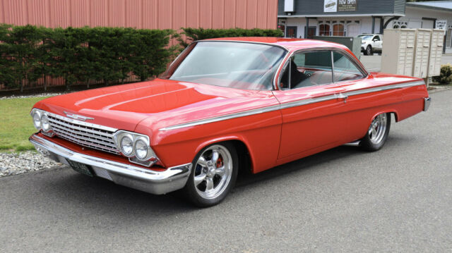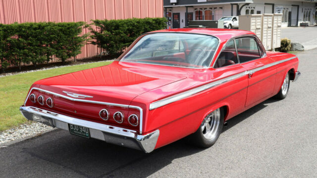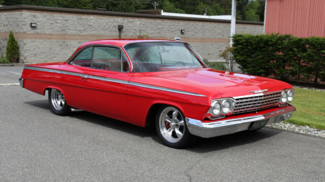Description: 1962 Chevrolet Bubble Top Impala Thousands of hours spent restoring this resto-rod Built in California, sold new 4/26/62 in Portland OR Sales order included from the Fields Chevytown dealer Stripped to bare metal (all bodywork & fabrication) Painted Torch red, straightest body ever Handmade inner fender panels, core support fan shroud & firewall Extra smooth, no seams, all wiring hidden, well thought out Big block .30 over 454 roller rockers, Crane valve springs Performer intake, Comp 280 cam, Holley 750 CFM Polished crank & complete balance makes big horsepower Stainless headers, Edelbrock aluminum heads, 3-speed auto 9-inch Ford rear end 3:50, 3 spline Trac-lok big yoke rear Griffin aluminum radiator, Saginaw quick-ratio P.S. box Flaming River tilt column with Momo steering wheel RideTech Shockwave 9000 system, works excellent Baer track & pro systems with 13.25 diameter 2-piece rotors Front 17 x 8 Americans with 245-45-17s Comp T/As Rear 18 x 9 Americans with 295-45-18s Comp T/As Classic 3 pod gauges (speedo-tach-fuel oil temp volts) Every part removed & restored to better than new 1-piece bumpers, headlight doors, grille Light bezels, door glass frames, windshield moulding polished or chromed All new glass & gaskets, fully custom bucket seats Custom console with command center for air ride, P.W. & shifting Beautifully designed red door panels with black inserts New carpet, seat covers, headliner & kick panels Hidden Kenwood stereo with Bluetooth - SiriusXM ready V.I.N. 21847L191845 Stock # 25684 512 test miles $109,950 (muscle car trades, financing available) For more info please call Louis Lamb 425-343-7079, Adolfo Sandoval 206-683-5855 or Kent Chaplin 206-713-7844