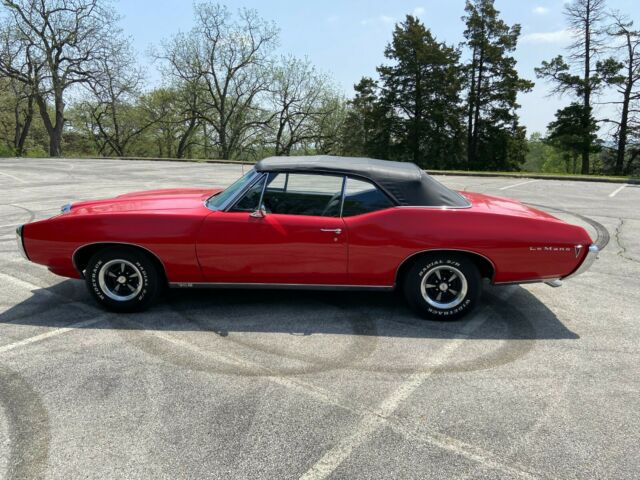 Here is your opportunity to add a beautiful classic car to your collection. Our 1968 Pontiac LeMans is ready to cruise the streets now that the weather is nice again. Picture yourself on a gorgeous day with the top down, the wind in your hair, the sun shining down, and your foot mashed down on the accelerator. Feel the 350 cu. inch V8 grumble to life and catapult you around the roads. The red body with black top and interior are a classic combination that is always a stunner. Although this vehicle is solid and great looking, it is not a fully restored immaculate vehicle. You are buying a âdriver.â This is a car to take around town or on the highway. This is not a museum piece. As such, there are some flaws on the LeMans. The car has been painted and has bondo. It has some chips, dings, and scratches. If you are looking for perfection, this is not your car or price range. We have made a solid effort to have photos of anything of notice. A quick side note: The gas gauge does not work. The rubber seal at the leading edge of the convertible top is ready for replacement. Please feel free to reach out with any questions or desire for further photos. We are here to assist you. This is an âAs-Isâ purchase. There is no warranty on this vehicle. Remember, there will be items that need maintenance. This is a used vehicle.