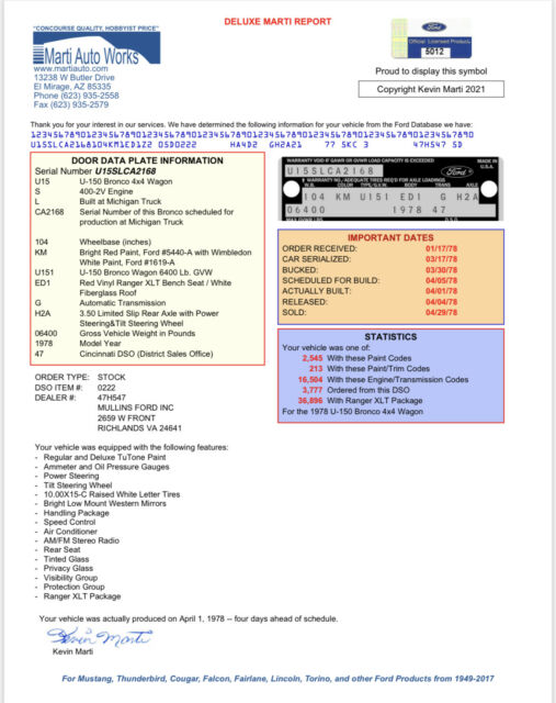1978 Ford Bronco Ranger XLT Frame Up restoration. This is a super rare truck that only 213 were ever produced to this exact specification (verified thru marti report).This truck is the highest package Ford came out with every option. Ranger XLT with heat, Ac and radio. The truck finished it restoration in 2021Engine and transmission have been rebuilt and the engine is bored and cammed. Also has a new distributor. New brake booster and master cylinder. This is the exact colors that it was produced from ford in 1978All interior panels are factory and untouched. The Rear seat is 100% original. I did have the front seats reupholstered In the exact specs it came from ford. I used an Upholestry shop that had the booklet to order from 1978. The carpet was replaced to ford specs.This was a 2 year restoration The entire truck was sanded down to bare metal then primed, 2 base coats and 2 clear coats. I had the frame and axles sandblasted then painted. Everything works as it should.Ac and heat both work and the trucks runs and drives great. It does have a 9inch lift with 37âs on it. This is truly a show truck and you will appreciate it seeing it in person. You can take the truck to any local mechanic at your expense.Do not put in any offer unless you are ready to pay for it right away. 1k non refundable deposit is due within 2 hours if your offer is accepted. I can show you multiple videos and FaceTime you anything you want to see. Call or text with any questions 812-603-8191Have title In hand. Can help with shipping.