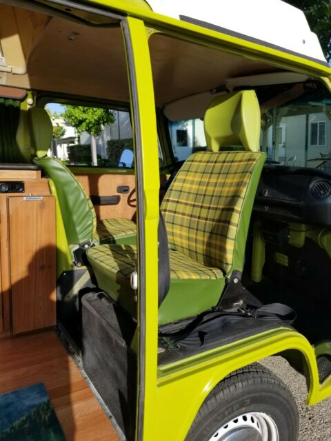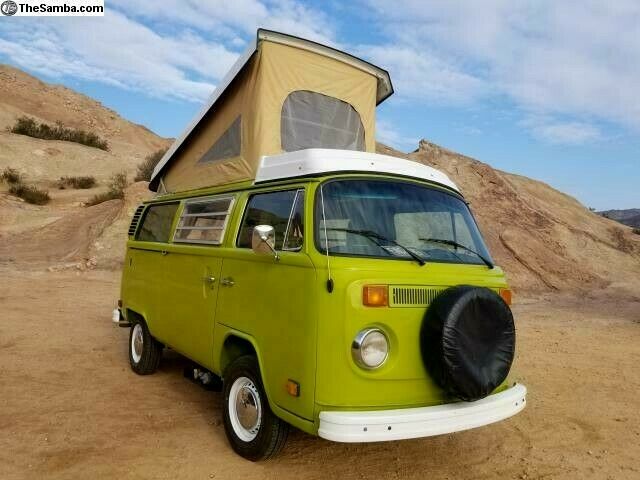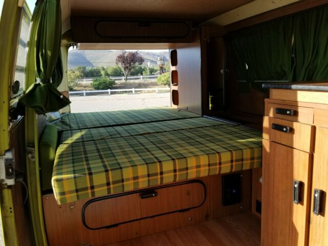 VW AUTOMATIC, Deluxe Limited Edition Westfalia CAMPER - 1977 Limited Deluxe Green/Yellow Plaid Edition - 1977AUTOMATIC TransmissionTotally straight and extraordinary dry bodyOdometer reads 14624 milesPERFECT STRAIGHT AND EXTRA DRY BODY, NO ACCIDENTORIGINAL CA CAMPER , HARD TO FIND ONE AT THIS CONDITIONALL ORIGINAL FURNITURE INTERIOR IN EXCELLENT CONDITIONMechanical: Professionally rebuild 2L engine with hydraulic lifters (best you can get) , heads with premium valve seats , premium pistons/cylinder set, rebuilt Bosch alternator, Electronic ignition (no more points), new Edelbrock electric fuel pump, fuel hoses, vacuum hoses etc.- Steering: very good, no play- Suspension: good , new steering damper- Wiring: inspected, new emergency flasher switch, Lights: all new bulbs around, new flasher relay, fuses, all lights, headlights, and blinkers work.Brakes are reliable, inspected and adjusted emergency brake- starts right up,- original VW bus rims- original VW logo hubcaps - new light truck tiresBodywork: straight body, no accidents, - sanded to primer, painted with correct code paint and clear coded, - Fiberglass top repainted - undercarriage like new- tan pop top canvas brand new with three windows- new batteryOther new parts (and much more):- both outside mirrors- turn signal lenses and seals- side markers- both taillight lenses- outside front door scrapers, inner scrapers- New toned windshield glass- New window seal: windshield seal, Rear hatch window seal, rear side windows seal, front door seals- Original side (coat hanger) cabinet and head banger cabinet - Original Westfalia full size bed on top (covers removed, dry washed and reinstalled)- Original Deluxe sink unit with water reservoir, electric pump pump, stove and cover, original refrigerator cabinet both on the long side (behind driver)- Original style cabinet handle on all doors - Z bed and rear cushion with a new high-density foam, plaid fabric replaced with new OEM green plaid. New white birch wood ceiling. Outside city 120 V and city water hook up. - Both louvre windows in excellent working condition- Swivel leg table - Spare tire installed on the front nose to make more storage space inside- New front seats green plaid, new seat padding- new cargo area wood floor, new kick panels.- Captain Chair (180 degree turnable) passenger seat Ready for your summer, take her to the beachThe nonrefundable $500 deposit is due within 24 hoursThe full payment has to be made within 7 days