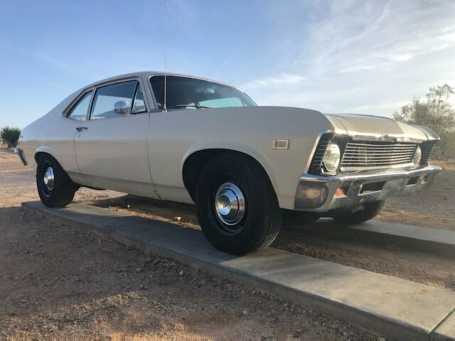 This is about as solid a Nova as you'll find. Motor has rod knock. It runs enough to pull itself onto a trailer, but that's it. Perfect for a V-8 swap. This car is as solid as it looks in pics. NO RUST of any consequence. I have been EVERYWHERE on this car and found no rust. Arizona car it's whole life. been in garage or carport it's whole life. My girlfriend bought this in 1999 with 15k on it. I bought it from her with 53k on it and I've put the rest on it. 104k TRUE MILEAGE. She's been bumped a couple times but never wrecked hard. NO BONDO. Mostly original paint. I'm 2 hours from 'Vegas, 5 hours from L.A. 4.5 hours from Phoenix. Text or email is best. PLEASE, no scammers. I will only accept payment in person or wait 'til full payment before shipping. Title stays with me until check clears. Comes with original manuals and protectoplate. MANY extra parts (bench seat, cowl hood, original intake and exhaust manifolds, etc.) If you're looking for a great resto-mod starting point, look no further. I put a bunch of valuable go-fast stuff on it. $1500 in manifolds and carb (390 Holley) Oil accumulator, piggyback fuel tank, etc. This was my daily (only) driver for the last 3 years. Walk around video: https://www.youtube.com/watch?v=ye-8ymDGzPQ