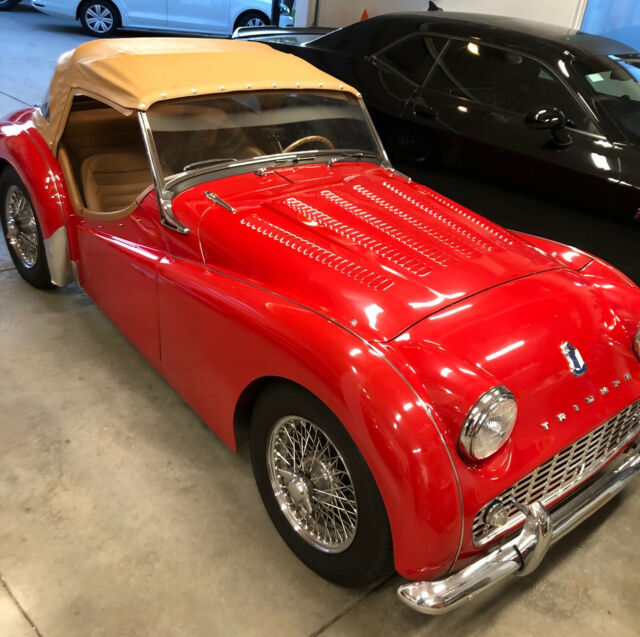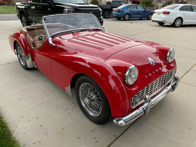 See videos below! This beautifully restored Triumph TR3 runs perfectly, has been meticulously cared for, and is gorgeous inside and out. It is fully equipped with sought-after features such as wire wheels, overdrive, Weber carburetors, tonneau cover and soft top, and includes both the racing-style hood (installed) and a separate standard hood.British roadsters have had a huge impact on the automotive world. This 1961 TR3 is a part of that illustrious history of light, peppy, and fun top down machines. Under the hood is a punchy 1,991cc inline 4-cylinder engine breathing through dual Weber carburetors with a crisp exhaust note, making for an incredible sound. That mighty machine is connected to a 4-speed manual transmission with sought-after overdrive. Other features include knock-off wire wheels, vented hood and standard hood, and front disc brakes for quick and secure stopping power. The red exterior is accented by gorgeous chrome and is in nice condition. The interior is tan with comfortable bucket seats, Moto-Lita wood rim steering wheel, Jaeger gauges showing only 4,718 miles since restoration (total miles unknown) as well as a tan matching top and tonneau cover. This little show-stopper is ready to hit the road for some top-down fun! **See 49 hi-res Photos here: 1961 Triumph TR3A Google Photo Album (49 Photos) See walkaround video here: https://youtu.be/TO3DrWKXhFUSee startup & drive video here: https://youtu.be/qXJ9dwlCSGMVideo will open in a new window.ft_vid { margin:.5em auto 0 auto; max-width:480px; font-family:arial; text-align:center; position:relative; min-height:120px; overflow:hidden; background-color:#555; }.ft_vid p { position:absolute; margin:0; color:white; background-color:rgba(0, 0, 0, .5); }.ft_vid .ft_vid_head { font-size:16px; width:100%; height:28px; line-height:28px; text-align:left; top:0; left:0; padding-left:10px; overflow:hidden; }.ft_vid .ft_vid_foot { font-size:11px; width:100%; bottom:22; left:0; }.ft_vid img { display:block; max-width:100%; border:0; }.ft_vid a:after { content:"\A0\25BA"; position:absolute; width:60px; height:50px; left:0; top:0; right:0; bottom:0; margin:auto; border:0; border-radius:10px; color:white; background:rgba(0, 0, 0, .6); font-size:24px; line-height:50px; cursor:pointer; }.ft_vid a:hover:after { background:#CC181E; }.ft_lnk_div { margin:-10px auto 0.5em auto; padding-top:5px; max-width:480px; font-family:arial; font-size:12px; text-align:center; position:relative; color:black; background:whitesmoke; }.ft_lnk { /* position:absolute; */ top:100%; left:0; width:100%; text-align:center; padding:.5em .2em; border:0; background:whitesmoke; }