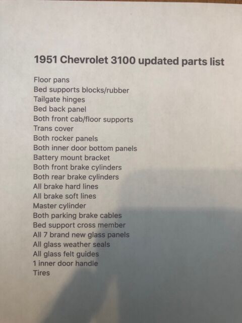 @import url(https://fonts.googleapis.com/css?family=Roboto); About this vehicle This 1951 Chevrolet 3100 is a project vehicle. The owner has had it for 1 year. The vehicle needs work. Seller's Notes The brake system (as listed in parts) is fully functional with parking brake. The frame is in excellent condition. I was keeping the trucks exterior patina, so the only metal fabrication that has not been done is the rear cab corners, the outside of the rear cab corners look fine but it is Bondo from a previous restoration, but if I cut them out to replace with new then it wouldâve taken away from the look of the truck⦠if new owner is wanting to restore this truck to original classic condition then the only fender that will need to be replaced is the passenger side rear. Vehicle Details Clean Georgia title. But I will provide bill of sale if needed. A list of all metal fabrication done and parts list is in last picture of the listing. Will come with engine, transmission, driveshaft, exhaust and intake manifold, flywheel and front crank pulley as shown in picture. Differential is a 10 Bolt from a 63 nova. Please feel free to ask for any more pictures. Exterior Interior Engine Download the eBay Motors app