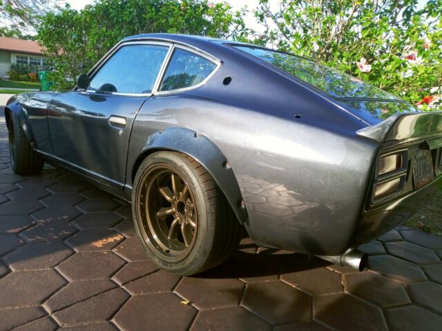 THIS IS ONE VERY WELL BUILT CALIFORNIA DATSUN , THE ENGINE CAME OUT OF MY RED 77 1 OWNER Z WITH 46K MILES. SIDE DRAFT CARBS , COMPETITION HEADER WITH FULL 2.25 EXHAUST , 4 CORE ALUMINUM , ELECTRIC FAN , NEW STAGE 2 CLUTCH .NO SHORT CUTS, ONLY QUALITY PRODUCTS USED , MSD #6 BOX , MSD BLASTER COIL , MSD PICK UP COIL ,MSD WIRE SET , NGK PLUGS, PAINLESS WIRING 70 AMP RELAY KIT X2 , FUEL PRESSURE REGULATOR , ELECTRIC RACING FUEL PUMP, GAS TANK WAS REBUILT AND COATED, RACING FUEL LINES , OIL COOLER .DISTRIBUTER REBUILT AND MODIFIED, TOYOTA BIG FRONT BRAKES FROM CALIFORNIA DATSUN. AUTOMETER TACH INDASH . ALL MOUNTS ARE NEW , ALL SYNTHETIC FLUIDS IN ENG, TRANS,DIFF.NEW SHIFTER BUSHINGS. CAR RUNS AMAZING .TEIN LOWERING SPRINGS. WIDE ZG FLARES , REAR IMSA SPOILER , STAGGERED 17X8.5 -10 AND 17X9.5 -20 ROTA RKR WHEELS IN CUSTOM METALLIC EXPRESSO PAINT WRAP IN CONTINENTAL EXTREME CONTACT 225/45/17 AND 255/40/17 BRAND NEW.SUPER SOLID CALIFORNIA CAR 97% RUST FREE HAS ONLY 3 QUATER SIZE RUST SPOTS AS SHOWN IN PICS , PAINT IS 15 YRS OLD IN A METALIC CHARCOAL , STILL SHINES DRIVER SIDE FRONT FENDER AND HEADLIGHT BUCKET HAS A MINOR FENDER BENDER, ONE OF MY KIDS BACKED UP INTO IT .INTERIOR DOOR PANELS ARE GOOD, AS CENTER CONSOLE , NEW SEAT UPHOLSTERY , COULD USE NEW RUG KIT