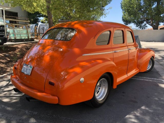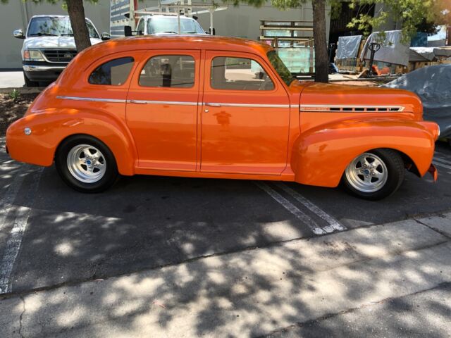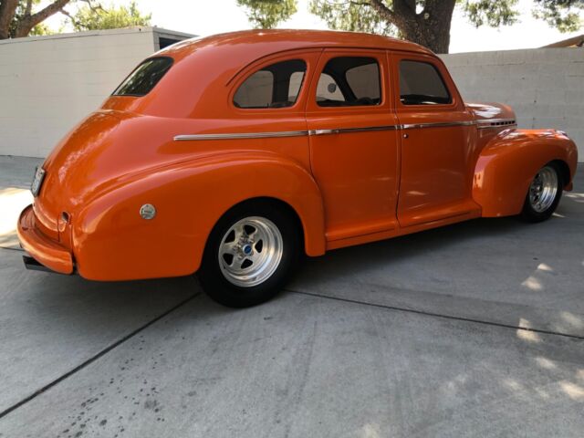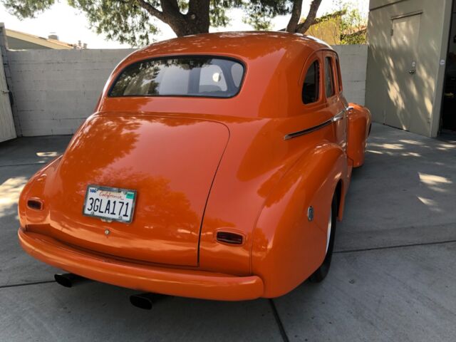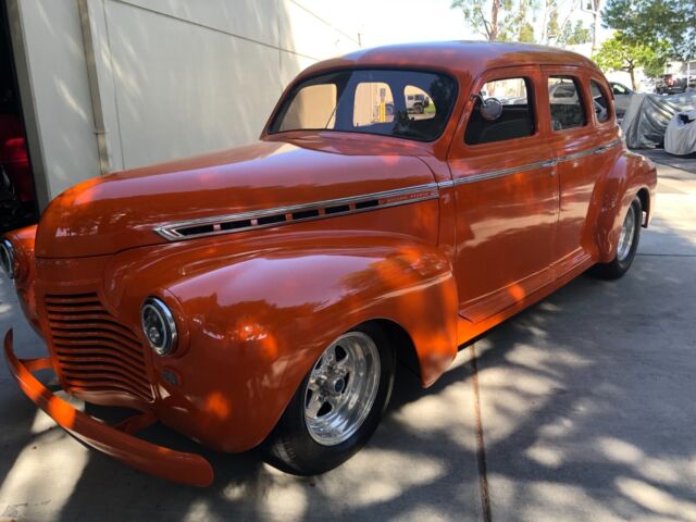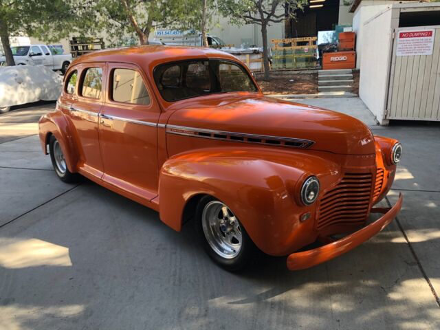 So Cal Classic Car Storage is proud to present this 41 Chevy Sedan mild custom for sale. You will love the thoughtful build of this orange classic. Plenty of power under the hood with a 400 HP 350 small block Chevy motor with a Weiend supercharger. The transmission is a TH350 and was just rebuilt about 1,000 miles ago. The suspension up front has been upgraded to a Mustang 2 clip with Heidts. The power is handled out back by a 10 bolt Chevy rear end. Windows tinted and weather striping replaced. Outside this cruiser's Dupont custom orange paint is of high quality and presents very well. Notice the streched fenders out back by 2" to get those bigger tires in there and the shaved hood and rear trunk handles? The bumpers have been shortened up front and back. And what's not to love about those Cragar Dragstar aluminum rims inside those BF Goodrich tires, 275 out back and 245 in front? Notice that most all of the stainless steel has been removed around the car to give it to give it a cleaner look?The inside is super comfy and has some nice upgrades as well. Wood grain dash, Stuart Warner gauges, La Carra steering wheel and and AM-FM stereo and speaker system. The hidden trunk release is a real nice touch inside. The seat covers give it a nice so cal look and make this a operfect bach cruiser. Lots of receipts!For more information regarding this vehicle please contact Ron at 714 412-8432. Here at So Cal Classic Car Storage we've built a reputation for providing exceptional service to both our concierge storage as well as our consignment customers. (Please see our Yelp reviews for further reassurance of our customer satisfaction). With that said, we're only interested in a smooth and hassle free transaction on this sale. So, please have your finances in order including loan approval if necessary and permission from your spouse if needed. We'll accept cashiers check or wire transfer (must clear before release of vehicle). No exceptions. Sold as-is, no warranty. We do not need help with financing, transportation, marketing or selling.