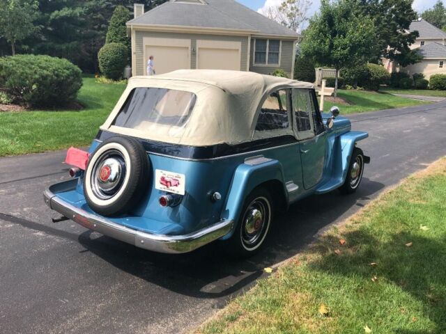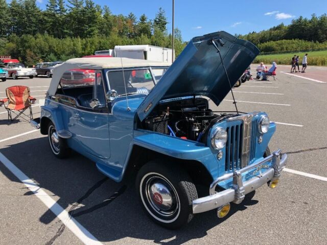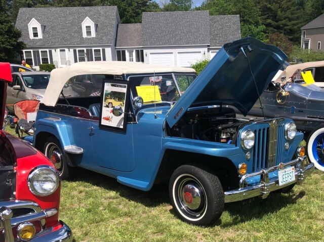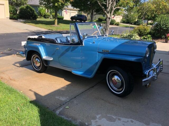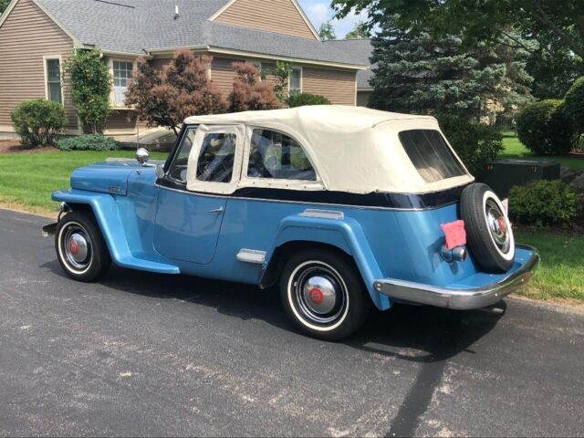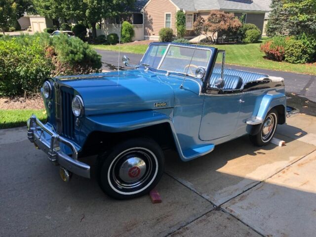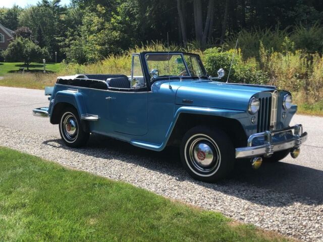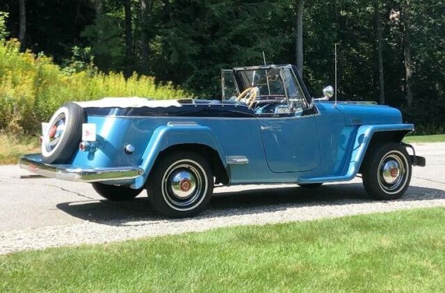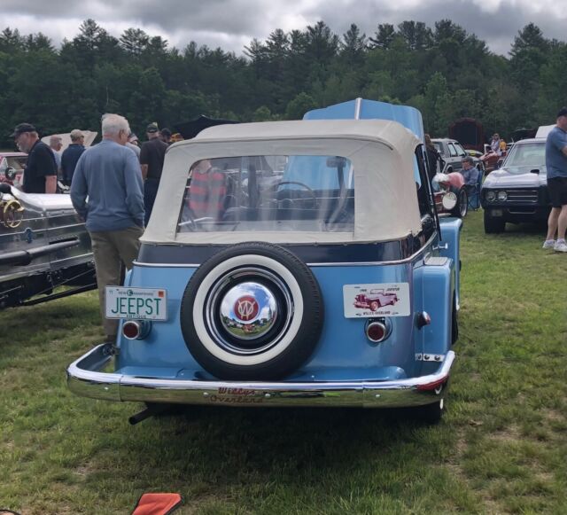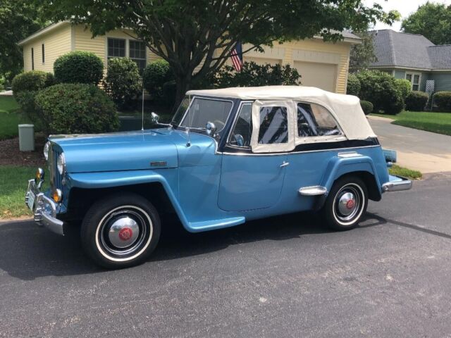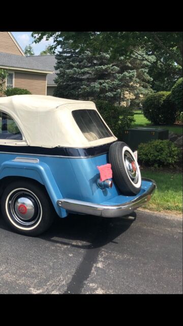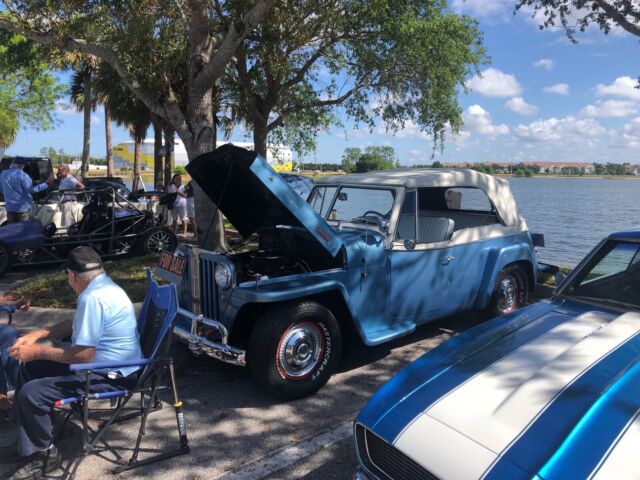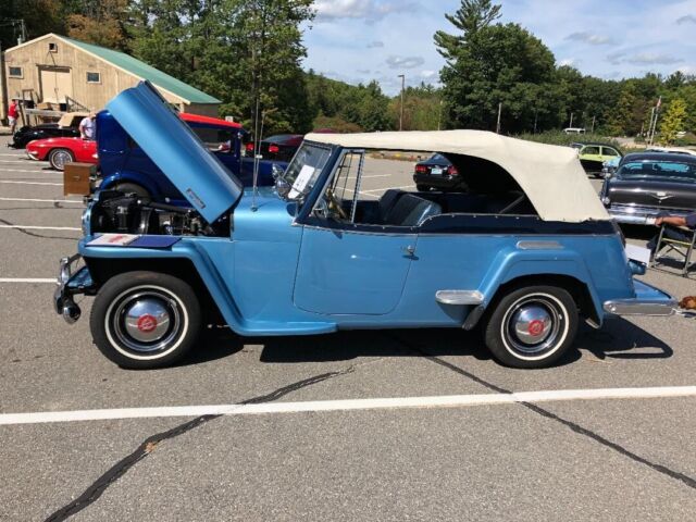 @import url(https://fonts.googleapis.com/css?family=Roboto); About this vehicle This 1948 Willys-Overland Jeepster is a restored vehicle. The owner has had it for 4 years. The vehicle runs great and is mainly used for car shows. Seller's Notes Assistance with buyerâs licensed transporting vehicle will be provided for cross country shipping Vehicle Details GREAT FUN CAR FOF THE SUMMER 1948 WILLYS JEEPSTER - $24,500 or B. R. O. Lost my storage must sell. For Sale excellent first year '48 Jeepster. Fog lights and spot lights. Al lights, horn, and dash indicators work properly. Two tone blue paint in great condition with dark blue vinyl seats and white convertible soft top and two sets of side curtains - One set are canvas and plastic like the originals, the others are clear acrylic plastic 3/16â thick. There is no rust. The exterior is in very good condition. Front bumper assembly have been chromed since the when the photo you see in this ad was taken. Has the two extension chrome wrap around rear bumper pieces recently chromed which are typically found on the other Willys models "In car-starved post-WW II America, Willys enjoyed a healthy share of the consumer market. In 1948, Willys built 135,528 vehicles and generated a profit of more than $6.5 million. The company introduced the Jeepster on April 3, 1948, rather late in the model year, and this sporty, open-bodied car has a spot in history as the last true phaeton introduced by a major automaker. The handsome Jeepster had the same front-end styling as the Willys wagon and pickup, but with a fancier look thanks to Stevens' stainless steel T bar in the grille. While slab-sided like other Willys' offerings, the Jeepster had a higher cowl, the beltline dropped at the doors and then kicked up again on the quarter panels just aft of the doors. For a lower look, a chrome strip ran along the body side a few inches below the beltline, sweeping up over the cowl. The Jeepster was designed to be a sporty automobile, so Willys offered it solely as a two-wheel-drive model. This model is equipped with Overdrive. Front Bumper system, rear bumper extensions and trim pieces rechromed. Upholstery Dark Blue Vinyl in excellent condition Door Panels Black Vinyl insert White convertible top Floor Blue loop carpet AM/FM radio behind chromed dash panel on left with speakers in side panels Glove compartment panel on right also chromed. Engine Willys "Go Devil" L-Head 134 4-cylinder with factory air filter setup and recently rebuilt carburetor Transmission Three on the tree manual with OD Included with the vehicle and part of the sale are the following extras, Mechanics manual, points, distributor cap, starter, dwell meter, timing light I have two videos of the car running if you are interested. Exterior Interior Engine Download the eBay Motors app