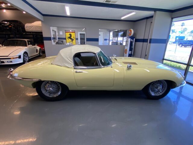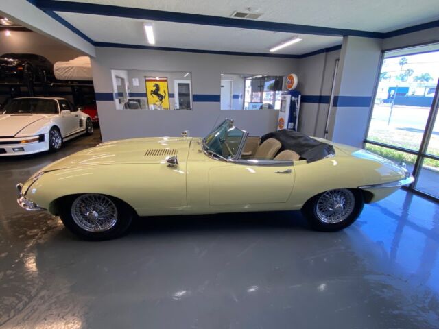 Gallery Junction is pleased to offer this 1967 XKE Series I Roadster. The car was purchased new in Cedar Crest, New Mexico and is a three owner car from new. Its original owner retained the car for 46 years, the second owner also of New Mexico looked after the car before selling it to its third owner here in California who has owned the car for the last 11 years. It is a numbers matching example. During his ownership recently the Jaguar was really sorted mechanically to itâs wonderful current condition that it enjoys today.-Details include over $12,000 spent including a new clutch assembly, rebuilding the braking system, flywheel ring gear and starter replacement, rubber bushes and mounts, carb rebuild, heater pipes renewed, ignition tune up, exhaust system, upgraded cooling fan, etc. This car drives exceptionally well with no issues.-Older full restoration still holding up very well. Very good primrose yellow single respray. Wonderful 100% rustfree bodywork with all original sheetmetal. Very good to excellent chromework. Lucas PL tripod headlights. Original Triplex tinted windshield and door glass.-Retrimmed leather interior featuring all correct materials.-Original radio, steering wheel, seat belts.-Vehicle includes itâs like-new original factory Dunlop RS-5 spare tire and rim, Jaguar tool kit, lifting jack and bag, front carpet set (rubber floor mats currently fitted),Spare parts and tune-up parts, touch-up paint, sun visors, 2nd black license plate.-Overall, this wonderful, well-preserved and usable low mileage, three-owner Jaguar E-type Roadster has a known history from new. Itâs in just the right condition to drive and enjoy, and still presents very well from itâs older but attractive restoration.Exporters Welcomed. We offer Facetime-Video Walk Arounds.For 50+ pictures, check out www.GalleryJunction.com or Text us for more pictures of any specific details you need. We like to be 100% transparent with all our happy customers all around the world.salesgalleryjunction@gmail.comCall or Text or WhatsApp 714-831-1226