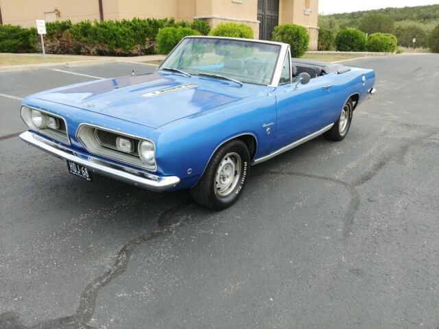 1968 Plymouth Barracuda Convertible 340 S "clone". 1973 casting 340 with W2 heads 3870810 and Edelbrock Victor W2 intake, Headers, Dakota Starter, 727 with manual valve body. 8 3/4 rear end with open 3:23. I do not know what cam and compression ratio is. Previous owner did not know either. New interior in last two years. Power Top is in good condition and no holes or tears. New Gabriel front shocks and Gabriel rear air shocks. Gas tank within last three years and new pickup/sending unit.Previous owner put in gauges. Front Kelsey-Hayes 4 piston disc brakes and rear drum brakes. The Rallye Wheels are 14" small bolt pattern. Replaced rubber brakes lines for fronts and rear.Power Steering with both lines recently replaced.Power TopHas the 340-S hood inserts and the S fender emblems.No fender tag or broadcast sheet. Car was original 318 motor by the VIN.Windshield had a stone hit it and crack it. It will need to be replaced. I figure since I am selling it and transportation probably necessary. Better to get once in new owners' hands done and if any new windshield issues come up. They are covered to you.It is a good cruiser to go out and drive and enjoy. Get plenty of thumb's ups. Car is being sold as is! No warranties! Test drives will be driven by myself. Car was Texas DMV inspected this year for registration. Not all classic cars in Texas get DMV inspection. I will assist in car transportation pick up. But you have to obtain the carrier and you pay them. I have in my name the clean title. Car will not be released until funds clear bank.$1000.00 deposit within 48 hours using PayPal or Zelle. Car is For Sale locally and I have the right to dismiss this advertisement at any time.