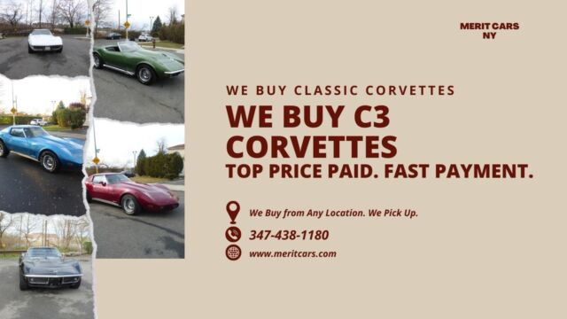 1976 Corvette C3 350 Stingray Matching Numbers Runs and Drives Good1976 Corvette C3 Stingray that can be used as a driver. The car is in silver with a black interior and it has the desirable side pipes. It is a matching numbers car with automatic transmission. It has been maintained in good driving condition. Paint is showing age. Interior is clean and nice. Mechanics are in good working order. Engine runs strong and sound from the side pipes is very nice. Transmission was rebuilt in 2018 and shifts smoothly. Frame is clean and solid. Car is missing the spare wheel and cover. Headlights work through the vacuum system. With some minor attention this can be made into a very nice car. More pictures and videos are available on our website. Visit us at Merit Cars.A walk around video of the car is located in the eBay listing (second thumbnail).We are classic car dealers located in New York, USA. More details about us are available in the âAbout Meâ page. Visit us at Merit Cars.Car has a registration from Connecticut. We ship all over the USA and worldwide. For overseas shipments the car ships from the port of NJ. Shipping for a car of this size in a shared container to major European ports of Rotterdam, Antwerp, Bremerhaven or Felixstowe is approx. $1200 plus a cost of $275 to transport to a shipping company's warehouse. Other European ports will be slightly higher. Please note - given the age and uniqueness of this car all sales are final. Please feel free to ask any number of questions and please feel free to ask for more pictures. You are welcome to come and inspect the car - the car is located in College Point NY 11356 - which is about 20 minutes east of New York City. However since this car is very old we possibly cannot check each and every item on the car. As such the car is strictly sold on as-is basis and all sales are final. Buyers with less than 5 feedback need to contact us before proceeding. Buyer must pay a $500 deposit within 48 hours of close. The final payment is to be received within 7 days of confirmation. We only accept US bank checks and wire transfers. Vehicle is listed for sale locally and subject to prior sale. Please feel free to contact us if you have any more questions. Telephone is USA-347-438-1180.