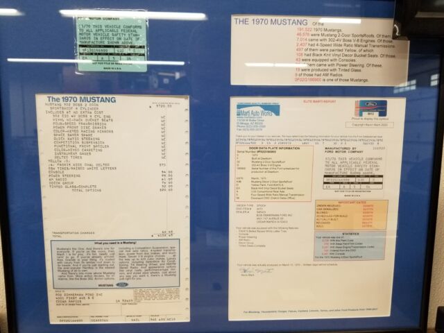 This is a real 1970 Boss 302 that has been build into a restomod roller. Lots of new metal professionally built by Peterson Restorations LLC.It has many custom modifications done to it that I will list below.Mustangs to fear fron sub frame coilover suspension Mustangs to fear rear coilover suspension Mustangs to fear mini tubsBody is dropped 1 inch over the floor to lower the car without maxing out the suspension Custom radiator cover panel Drip rail channels are shavedBottom rocker lip is shaved18x9 front and 18x10 rear wheels. Back has plenty of clearance for even wider wheelsFlaming river column with tiltSet up for a coyote 5.0 engineMany other small details done to the bodyAll body gaps have been gone over in detailThis is one of my main jobs in my business, I restore rusty shells back to life and sell them as rollers for others to finish. This is one beautiful shell and will make a very custom mustang boss 302 for someone. I have a clean PA title in my name also have elite marti report with an original invoice from marti auto to go with.I have already test fit an entire driveline for clearance so this shell is really gone over in depth for ease of the buyer. What you see is what you get, no extra pieces. Also will come with Mustangs to fear aluminum hood and trunk hinges in black anodizing brand new in the box. Buy with confidence.