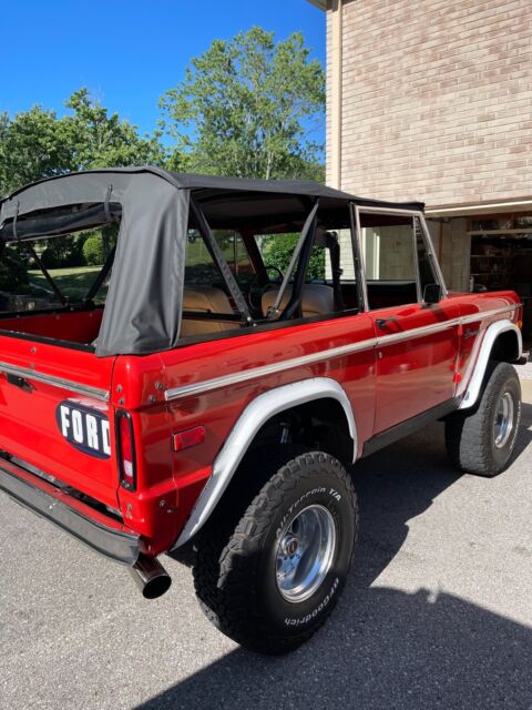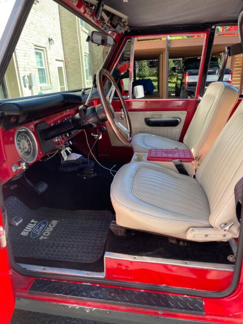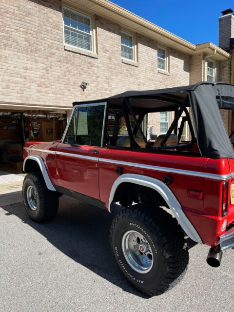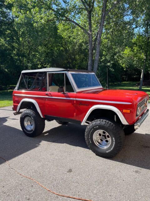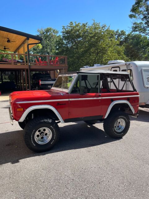 I bought this Bronco from a well-known & highly respected restoration shop in Statesville, NC. It was ordered new in Los Angeles California and spent the vast majority of its life in Barstow California and Phoenix Arizona. Rust free, all original panels, floors ect...never had metal work. Previous owner had it since 1989. The Bronco is powered by a 302 V8 backed by a C4 Automatic transmission in great running order. Bronco has a true dual exhaust, updated electronics and carb. Truck will do 65 mph down the road without issue. The suspension and drivetrain have been built to handle off-roading in the western deserts. Built Ford 9-inch rear with 4.56 gears and locker, and built Dana 44 with 4.56 gears and an Eaton Tru-Trac make up the axles. Rancho Quad shocks front and rear along with a 4-inch lift and BFG 35x12.5R15 tires mounted on Enkei wheels help this Bronco over rough terrain. Interior is in good shape and everything works as it should. The dash has all the factory gauges and controls in good working order along with a vintage Stewart- Warner tachometer. The modern radio and speakers work great. Dash pad does have one crack visible in the photos. The center console is a very cool vintage Igloo Cool Rest! Body is in good condition and has zero signs of rust, look at the photos of the floors! The body lines are straight, the doors, gate and hood open and close nicely. The red paint is older and not nearly perfect, somewhere 6-7 out of 10. The Bronco would need a repaint to be near perfect but the current paint is more than sufficient for a weekend driver or adventure rig. The Bronco has spent most of it's life as an older gentlemanâs off road toy in the Arizona desert. It was very purpose built and loved. Truck is setup to thrive on any weekend adventure. Many additional photos available upon request. Upgrades/Parts/Repairs & More (All Receipts Included) James Duff (2020)· C bushing KIT 4pc ($49.95)· Steering Stabilizer ($49.95)· Monster Disc/Drum Brake Kit ($1899)· Metal Hood Struts ($119) Discount Tire (2020)· 4x 35x12.5 R15 Tires ($1,239) Quick Muffler LLC· Install 2 40 Series Flowmaster & Chrome Tips ($507) Wild Horses (2020)· 14 Inch Steering Wheel & Horn button ($244)· Chrome Gas Cap/WH Billet Fuel Cap 2x ($121) Titan Motoring (2021)· 8 BillStein 5100 shocks· Install James Duff Front Brake kit/booster/proportioning valve· Install James Duff upper/lower ball joint bushings· Leveling kit ($3,561 total) Gateway Tire & Service (2022)· Timing gasket & chain· Water pump· New belts· New Aluminum Radiator· Trans Flush· Carburetor rebuild· Tune up ($3440) The Bad: · Has oil leak â rear main seal· Passenger seat has 2 holes