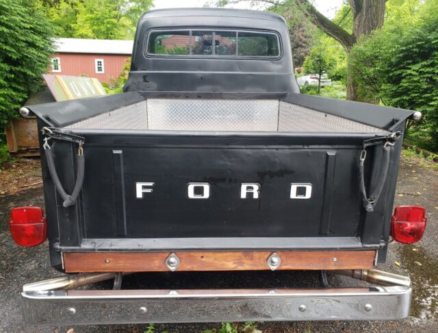 1954 Ford F100 pick-up truck with a 6-1/2 foot bed and powered with a Ford 351 windsor 4 barrel and an FMX automatic transmission. This truck is a driver not a"Show Queen" sitting in a garage and trailered to a car show,but it can be if you want to invest more time and money!!!Its a clean, tight Rat Rod . Bumpers, Mirrors, Handles all newer chrome.A nice paint job & a little cosmetic work changes the value of this truck into the $45k plus range .The front brakes are disc and the rear are drum, electronic ignition,Edelbrock 4 barrel,all stainless steel exhaust,all new fenders front and rear and new inner fenders,fiberglass running boards, walnut bed boards with chrome strips. The cab is carpeted black and has a saddle tan bench seat,headliner and door panels and the rear window has been replaced with a slider.The gauges are Dolphin gauges and it also has Vintage Air. All of the under carriage frame, firewall etc. have been coated with POR 15. This comes with 15 inch wheels with 235/75 Goodyear Wrangler Radials. The tires have less than 1000 miles on them.The 351 Engine is from a 1970 Ford Cougar that had 43,000 miles on it before it was rebuilt & the rebuild only has about 2500 miles .Starts up easily & idles and rumbles nicely . drives strong This has a Ron Francis fuse block and Ron Francis wiring is used throughout the truck. Most of the paperwork from all of the parts dealers is included. This has a clear Maryland title and the vehicle is located in Transfer,Pa.It comes with of the original parts, an extra hood, emblems,mechanical parts etc.Getting the hood to line up & go down perfectly straight was the only issue i was never able to get to.It Drops into place & locks in with a little wiggle & twist , but i was never able to get it perfectly lined up.The asking price is what I have invested in this vehicle in just parts alone. Some of the photos are during the project phase.You will be responsible for all transporation if purchased .