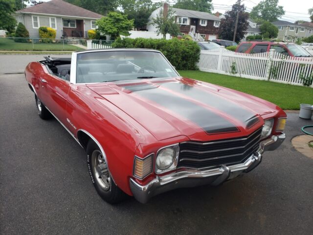1972 Chevrolet Chevelle Convertible Matching NumberOriginal Matching Number 350 motorTH350POWER TOPFactory A/C (need recharge)Power BrakesPower SteeringAuto TH350Body and Paint Really Nice (Presents and shines really well)Factory CRANBERRY RED color code "75"Floors/Frames/Trunk are clean and SolidRuns and Drives GreatEverything works.All light worksHorn WorksRadio worksCar is not perfect by any means but it's a very good/solid car and shows really well.Turn Key Car where you can get in and drive.They only made 4,853 CONVERTIBLE out of 649,269 Chevelle on 1972. That's less than 1%. Very RARE. And this one is CRANBERRY RED from the factory, one of the most desirable color of Chevelle.This is one of my personal car collection.Car is sold as is.No Warranty implied whatsoever.A $500 NON refundable deposit is required for purchase.Full Payment is due within 7 days after auction ends. NO EXCEPTIONS.If buyer failed to complete the transaction within given period of time, Car maybe offered to another buyer or relisted.Car must be picked up within 14 days after auction ends. Please make arrangements or Storage fee may applies after 14 days.Method of Payment are Cash, wire transfer or certified bank check only. Car will only be released after CLEARED payment. NO EXCEPTIONSLocation: New YorkI'll try to respond within 24 -48 hours on all serious inquiry. Please see full listing and photos for more info. Please ask any questions you may have prior to purchase, NOT AFTER.If you have more questions, feel free to send me a message or you can leave me your number.I highly recommend for all serious buyer to inspect the car prior to purchase as we have our own opinion when it comes on a condition of a car. No surprises at all.NOTE: Car is also being sold locally and listed on multiple sites. Auction may end anytime once it's sold.Thank you.