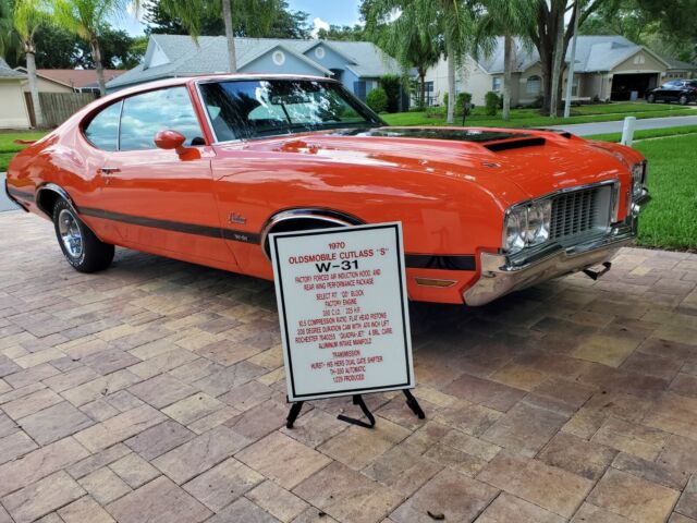For sale is a numbers matching 1970 Oldsmobile Cutlass W-31. One of only 1,029 produced and rare color of 'rally red'.This W-31 retains factory motor with correct #6 heads, aluminum intake manifold, and Rochester Quadra jet carb #7040255.Documentation shows repaint and mileage in June of 2000 at 54,906, and paint is an 8 out of 10 today. In 2012 the car was acquired by a collector where it remained in his collection for 10 years "picture included". I purchased the car in January of this year and have since replaced water pump, thermostat housing and thermostat, hoses, belts, new coolant, fuel pump, plugs, points, rotor, and had carb rebuilt, and new ram air components.I installed originally equipped Firestone Wide Ovals that i purchased from Coker tire in a radial form instead ot the bias ply. Front drivers seat had a tear at the seam, so i replacd both buckets with new foam and seat covers specified for this car from Fusick automotive.W-31's are rare and not often seen for sale.Car is sold as is and has no warranty A non refundable deposit of $1,000 is due immediately , and full payment within 7 days. Funds must clear my bank before car is released.
