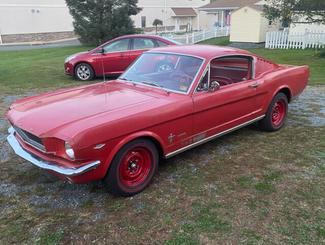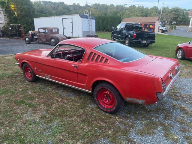 1965 Mustang fastback 2+2, v8 A code engine. factory AC (removed but I still have it), Disk brakes, power steering.This car was part of the Schroll Estate Auction as seen on the Iron Trap Garage show. This is an early production Fastback that has a lot of early original 1964 ½ Mustang parts on it.such as:1964 ½ style hood with the stiffening skirts, no hood molding, and beveled headlight bezel (One was replaced). Black hood hinges Early door handle and window cranks, black window fuzzies, As far as I can tell it has original paint and body panels with correct date codes. There are several old school metal patch panels riveted in the usual rust prone spots.Car was stored inside on a concrete floor for 40 years. I spent 30,000 in parts and labor to get it back on the road. After driving it only a few times, something broke in the engine, either a connecting rod or possibly in the valve train so it will need an engine rebuild, but at 140,000 it probably needed it anyway..I have done a lot of research and have a lot of documentation about where it was sold originally and who owned it.VIN:5 Last Digit of Model Year (1965)F Assembly Plant (Dearborn, Michigan)09 BodySerial Code (09 is for the Fastback)A Engine Code (Challenger 289 Four Barrel Carb, 225 Horsepower)277065 Consecutive Unit Production Number Cyl CID Carb Horsepower Bore x Stroke Compression8 289 4V 225 4.000x2.870 10.0:1Door Data PlateWarranty Number 5F09A277065Year: 5 1965Plant: F Dearborn, MIBody Series: 09 2+2 FastbackEngine: A 289 4v V8Unit: 277065 Body 63A 2+2 Fastbackwith a Standard Interior Color J Rangoon Red. Trim 25 StandardInterior Red Crinkle Vinyl with Red Trim Date 01J Dateof Production â 1 of September 1964DSO 23 District Sales Office Code â Philadelphia, PAAXLE 1 Standard Rear Differential with a Ratio of 3.00:1TRANS 6 C4Automatic TransmissionLeft & Right fender stamps: 8 30 D2 (August 30 DearbornSecond Shift)Engine bay stamp: 9 13 (Sept 13)engine tag:289 (engine size) 65 (1965 model year) 5 (change level)4-H (1964-August) N 553-J (Engine Code: 289ci, 225hp @ 4800rpm,4.00" bore x 2.87" stroke, 4V carb, 10.0:1compression, Small block)New parts installed:14x6 steel wheels dual red line steel belted tiresGT350 style air cleaner (I have the original)Holley carburetor (Have the one I got with the car)Rebuilt distributorplug wiresspark Plugsaluminized dual exhaust with flowmaster series 40 mufflersupgraged gauges in rally pacHornsnew Fuel system all the way from Stainless steel gas tank through new fuel pump to Holley carburetorLeaf springsNew brake system from master cylinder all the way to the discs and drumsCoil rear main sealmain and rod bearingsradiator and hosesvalve stem seals rebuilt power steering pumpbattery traysway bar bushingsstrut rod bushingsrear leaf springsall four shocksheater corefuel caprebuilt heater boxrear end fluid changedheadlamp dimmer switchtrunk lid weather-stripshifter bushingsdriveshaft u-jointsMy loss can be your gain.