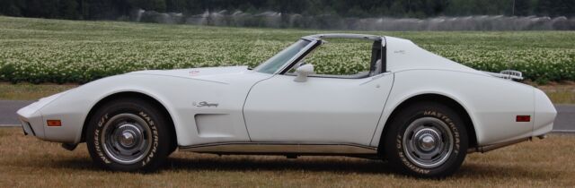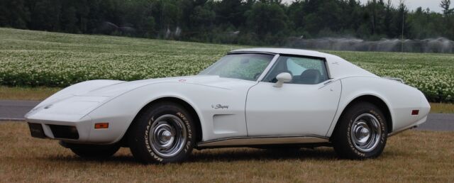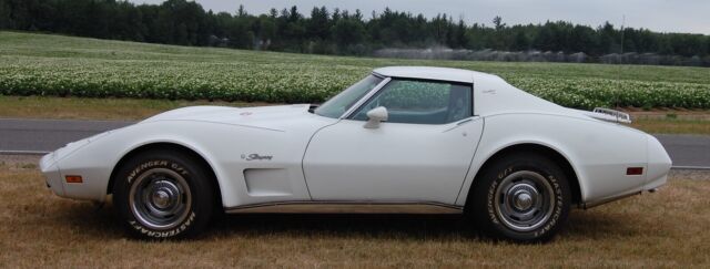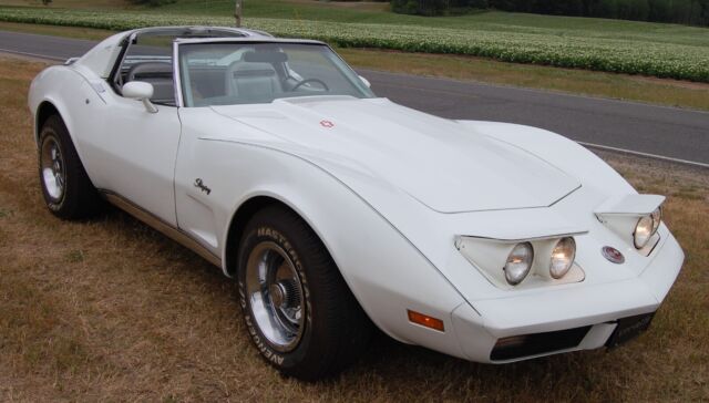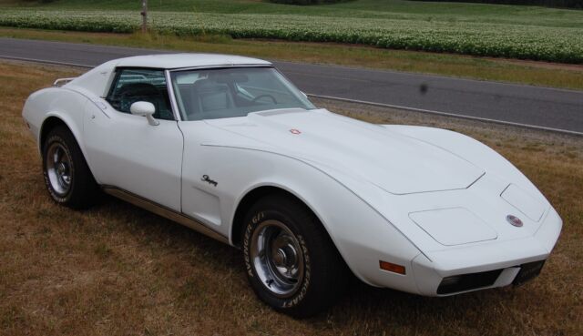 Offered for Sale is a Numbers Matching 1974 Corvette Coupe with a 350 CU L48 195 HP Engine, and a 3-Speed Hydra-Matic Automatic Transmission. Highly Original Car with Original 10L White Exterior Paint, Silver 407 Trim, Air Condition and Power Steering.The Car Came from an Estate, and Had Not Been Driven for a Number of Years. A Complete Tune-Up was Recently Completed on the Engine, and the Vette Now Starts Easily, Runs Strong, and Does Not Overhead. The Steering is Tight and the Shocks are Firm. This Vette Drives Down the Road Smooth, Tight, and Very Straight, and has a Lot of Power. Front Brakes (Rotors and Calipers) Have Been Replaced and the Car Slows Down and Stops Fine, But the Brakes Appear to be a Bit Stiff. The Tires are in Very Good Condition.The Undercarriage and Frame Rails are in Very Good Condition, with NO RUST Flakes and/or Chips of Any Kind Found Inside Frame Rails. The Vette is Solid!The Body is in Good Condition with Good Lines, a Few Minor Chips/Scuffs, and Cracks on Only the Front Bumper Nose (see picture). Paint Appears as if it Could be Original, and Has Age/Stress Cracks and Wear. This C3 Shows Well, and is What I Would Characterize as a Nice "10 Footer" Car. The Interior is in Very Good Condition. With the Exception of the Clock, All of the Other Instruments Appear to be In Good Working Condition. The Carpet, Seat Cushions, and Glass are in Good Condition. The Air Conditioning - Which Appears to be GM Factory Original - Does Not Blow Cold...Could be Issue with Freon. Modification Noticed Include Replacement of Original Radio, Chevy Bowtie Emblem on Hood, and "Heartbeat USA" on Side of Coupe Top. Known Modifications to the Engine Include Replacement of Intake Manifold, Installation of a MSD Performance Distributor and Performance Headers, and Replacement of Original Air Clear Assembly with a Smaller Unit to Accommodate the MSD Distributor. Included with the Sale are the Original Intake Manifold, Exhaust Manifolds, Distributor, and Dual Snorkel Air Cleaner Assembly. This C3 is in Very Good Original Condition, and it Would Not Take Much Effort to Get it Back to Stock, Out-of-the-Showroom Condition.The Odometer Shows Just Under 90,000, But Not Able to Verify if Actual Miles.This C3 Could be Enjoyed, Driven, and Shown at Car Shows Today with Pride as it Sits Now. Based on the Originality and Excellent Condition of Engine, Interior, and Undercarriage, as Well as the Solid Body, Replacement of the Front Bumper Cover and a Standard Paint Job Would Bring this Vette Back to Near New Condition and Likely Position it as a Hagerty #2 1974 Corvette Coupe with a Potential Value of Up to $30,000.This Beautiful Corvette is Located an Hour from Grand Rapids, MI, and is Available for Review and a Test Drive Upon Request.