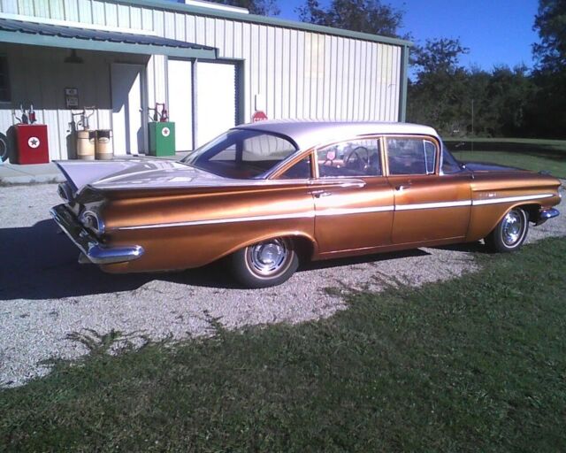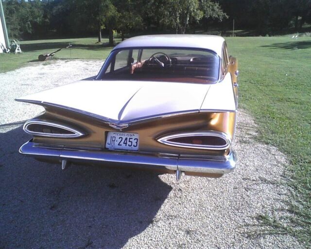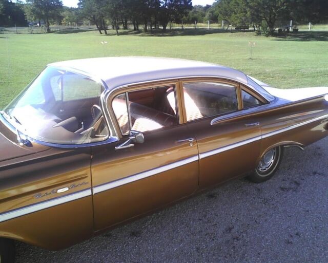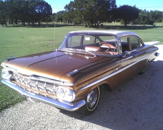 @import url(https://fonts.googleapis.com/css?family=Roboto); Vehicle Details Chevrolet Bel Air/150/210. This 1959 Chevrolet is a very reliable vehicle. It was repainted a few years ago in Gothic Gold and Adobe Beige. Sports a 6 cylinder engine that is strong and very reliable. It has a manual 3 speed transmission on the column. New brakes and exhaust system. Started to install A/C but never finished. The A/C kit will convey with the car for you to finish or I will remove the compressor and evaporator core for you if you wish. The tires are good and will drive out to you if you desire. The car has full hub caps and fender skirts. The interior has been redone with Ciadellia Impala interior. They do not make replacement Belair interior. Very solid car and is fun to drive. I have never had an issue with it and have taken it to many events. I need to sell some of my vehicles and need the room. You will enjoy this very reliable Chevrolet. For more information just send me a message. Images Download the eBay Motors app