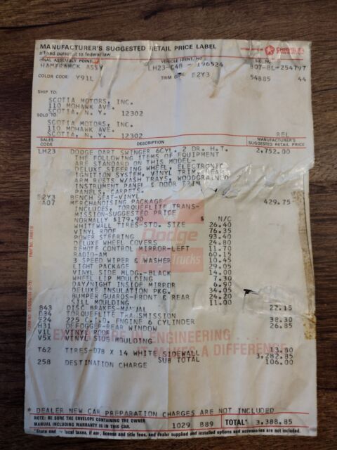 Bought this car about a year ago from an auction and it was in such good shape I decided to put some work into it. Origional color was brown and we painted it purple and reappolstered the interior tan with matching purple inserts. We polished the chrome bumpers, the trim pieces and the wheels, not perfect and could use a little more work. Put on a new vinyl roof and a decal on the trunk. No vehicle history report because of the year and vin but it did come with the origional onwers manual, MSRP, Bill of sale and a few reciepts. By the looks of the brake pedal and the over all condition the odometer may be acurate and has not rolled over, seems to be a low mile car. One of the really cool things about it is the fact the the origional purchaser paid extra to have the Zeibart undercoating applied and it worked as the car is still rust free. Anyway it has the slant six instead of a V8 but it is still very nice and would make a great cruiser or sunday car. It would be even worth it to take it to car shows as I am sure many people would enjoy looking at it. Everything works and it runs and drives just fine, these were pretty uncomplicated cars to begin with. Good luck bidding, I have a low reserve considering the price of the car and all the materials to restore it.