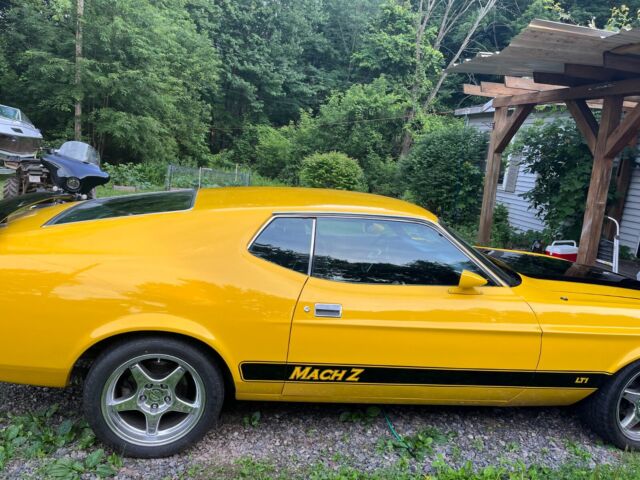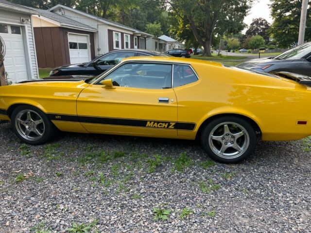 1973 Mach "Z" Mustang Supercharged 5.7L LT1 out of 4th Gen Camaro. Engine and Trans have 12,500 miles after being built from the ground up. See Below for complete list of upgrades/modifications.This is a special car folks, definitely a head turner!! click link for video and walk around!https://youtu.be/D4um-_MVZ6s$32,000 or best offer!Engine:385cubic inch LT4LT1block billetsteel splayed main capsAFR195 Eliminator headsshaftmounted rockersCompcams hydrolic roller camScat4340 crank and H-beam rodsJEreverse dome blower pistons, Cantontrap door corvette road race oil panElectricwater pumpSLPheaders2 1/2" dual flowmaster exhaustD1-SCprocharger 65lb injectorsTransmission: T56 6-speed with .50 6th gear. Upgraded synchros and shift forks. SPECstage 3.5 clutch Hydraulicclutch assembly.FrontSuspension:Usesfull front suspension from 4th Gen Camaro Z-28includingrackand pinion steering discbrakesA-armsuspensionUpgraded1.25" anti-roll bar and urethane bushings275/40/17tires on 17x9.5" wheels.FactoryGM K-member(modified mounting of course) bolts into the Mustang frameand can be removed out the bottom, just like a new car. Engine/trans/frontsuspension can drop out the bottom in one kit if desired, or come outthe top old-school.RearSuspension: Leafspring with custom floaters, with 4th Gen torque arm. 3.42Posi 4th Gen rear end, narrowed 2 1/2" to allow 315/35/17 tireson 17x11 wheels. Moser axles,AuburnDifferential. Upgraded1" anti-roll bar and urethane bushings with Koni Classicadjustable shocks.Brakes: FULLYFUNCTIONAL 4-wheel electronic ABS brakes. Workjust like factory, light on the dash and all.Body: Fullrotisserie restoration, new floors, rearquarters, innerwheel wells, and other repairs as needed. NORUST ON THE CAR. It does have some small paint chips behind thetires from driving it, but NO RUST, either visible or hiding. Allstripes and decals are painted and cleared over smooth, artfiles are saved. Paintcodes are factory GM colors and provided. Fullcustom underbody frame ties and K-bracing mount below factoryfloorpan. Allbracing bolts in place SECURELY to assist in handling and allowmaintenance.Interior: Uses4th gen guage panel, retains all factory functions, check engine,ABS, all as intended from factory. Rear fold-down "sportseats" factory optioned