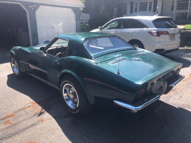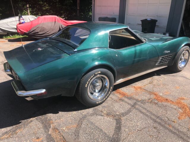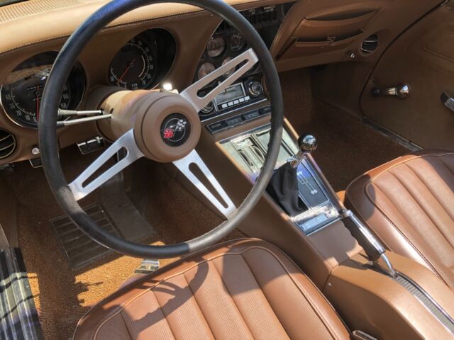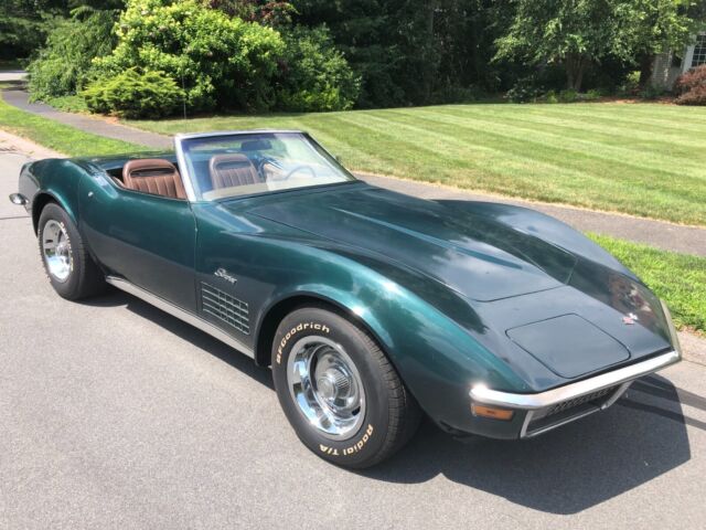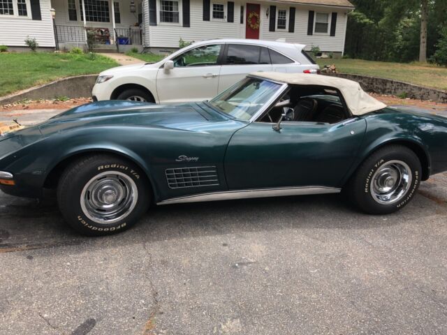 This is a very nice 1971 Corvette two top Convertible with its original matching number 350/270hp engine. It is also a factory 4-spd car with PS, Tilt/tele column and factory air conditioning that works. The body, frame and bird cage are all very clean, but the paint is weak and it really needs a paint job. The original engine has been rebuilt, the radiator is new along with the dash pad. The tires are also new. The chambered exhaust was just put on and it sounds great. The steering column has also been rebuilt. The soft top has one small slit that does not affect its use. The hardtop is missing the headliner. The lights and wiper door all work. All the gauges work with the exception of the clock. The car runs and drives great. The car will be sold with a transferable registration and a dealer bill of sale. If you must have a title I can apply for one, but it will take a few weeks. If you are looking for a C-3 Convertible that you can get in and drive immediately this may be the car for you and it has working A/C!