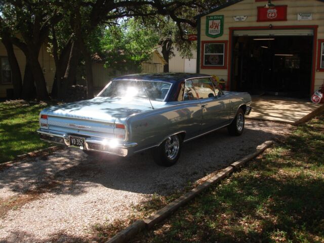 1964 Chevy Chevelle Malibu SS. NOT A CLONE. Total frame-off Restoration. Have numerous photos of the build and a 3" thick folder of receipts for the enormous amount of new parts and upgrades. The previous owner spent 67K+ on the build. I have added another 2K+ in further upgrades to enhance the dependability . The build is fresh w/1200 miles. Drivetrain: Rebuilt 355 cu motor w/ light cam, electronic ignition w/ MSD plug wires. Ceramic coated headers, Edelbrock intake and 1406 electric choke carburetor, rebuilt TH-350 transmission that shifts great with stock stall converter. Totally rebuilt 3:08 non-posi gears with new axle bearings, and seals. 4- Wheel power disc brakes, new 150 amp chrome alternator, Vintage air w/chrome compressor, chrome water pump and balancer pulley. Be Cool aluminum radiator, flex-a-lite dual electric fans/w adjustable thermostatic control. Super clean and detailed engine and engine compartment. American 5 spoke Chrome Wheels w/205/70/15 tires all around.Body: Fresh Silver Blue (stock color) on the lower body and dark Navy metallic on top. Touch-up paint included (top and bottom)if needed. The floor pans were replaced with "Ground Up" floor pan kits(no patches) front to rear during the rotisserie phase of the restoration. Looks like new factory. New chrome bumpers and window trim. New and polished body trim. New chrome outside mirrors w/Chevy emblems. New tinted glass all around w/new weather stripping, fuzzies, channels and rubber trim . New handles in and out. Doors close easy and solid. Interior: All new. Seat covers, headliner, carpet, kick panels, door and rear panels, padded dash and sun visors. Matching lap belts, Dakota Digital VHX gauges(BLUE BACK GROUND) and Dakota Digital "on the column" cruise control. Custom audio system w/all the options. It does everything. Sounds amazing. Flaming River tilt steering, new 64 Chevelle steering wheel, after market stock shifter made for the 350 transmission in the stock console. Cold Vintage A/C, heat and defrost. Phone charger. The trunk looks like new with a full size spare, jack and lug wrench. Polished billet hinges, latches and hardware. LED taillights and turn signals. New 2 speed wipers and all new wiring front to back. Much, much more. Clean, clear title in my name.The Chevelle won a "top 25" award first time out in a field of 150+ cars and trucks. Only the participants were allowed to vote. This car is like new and has years of enjoyment and positive attention offered for the new owner. I have not seen very many 64 Malibu SS's in the past few years. Especially one that has been totally restored @ a reasonable price. It is a great investment. Seriously interested parties can call 512-466-5307 for more information, questions and pictures. .Please, No text, transport solicitors, low ballers, tire kickers, etc. or anyone else with no intention or the available finances necessary to purchase this outstanding Malibu SS.Thanks for looking. The best to you and yours.