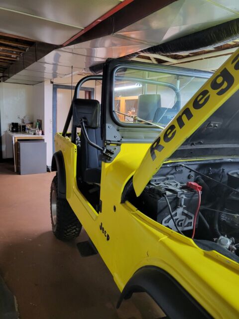 78 CJ7 project , I call it a project because its not quite there yet and I'm not going to have time to fix it up the rest of the way...78 Automatic 304 v8 with all original parts included with it as well as all the stuff I have bought.I would say its about 85 percent done. it starts and drives but needs to have the electrical gone through and get all the blinkers and tail lights working.I'm pretty sure it was originally a golden eagle but it has renegade stickers on it now.New tires 31/12.5 mickeys Baja'sNew lights oracle brand projectors with halosNew seat coversNew stereo and woofersNew 4 inch super lift and shocksNew brakesAll new front end parts and steering boxNew steering stabilizer. not installed yetNew seat beltsand all the old original stuff that was on it.It has the levis edition seats... back one is good fronts are pretty ruff.4x4 works great auto hubs (vacuumed) quadratrackhave new exhaust but it needs to be mounted up all flowmasterits on a push button start right nowNew steering columnNew steering wheelNew radiation with electric fansNew coilNew solenoidNew front windshield and frameNew mirrorsNew skylift shadow series shocks and yellow bootsNew rough county steering stabilizerIt does have some rust and bondo cracksI got all the bad spots listed in picturesI got sick and can't complete. The Jeep still needs quite a bit of work but the right talent could sure flip it and make some cash! This one is a eyecatcher! Has all the parts to finish! Clean title!