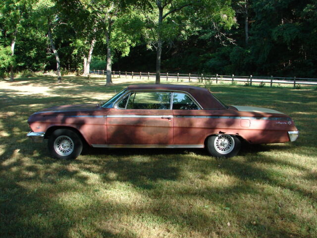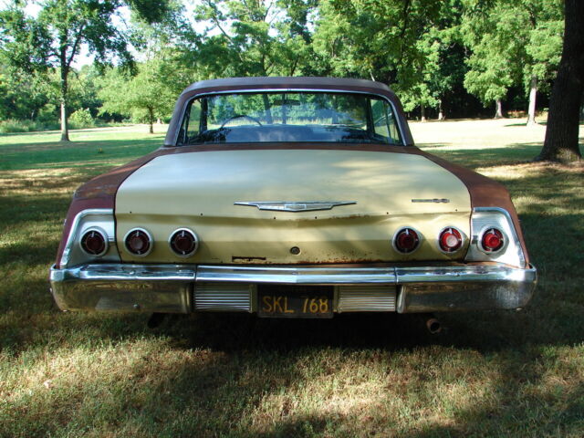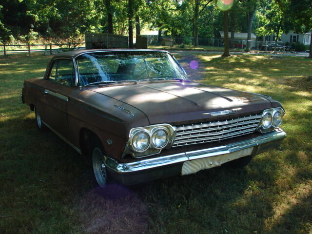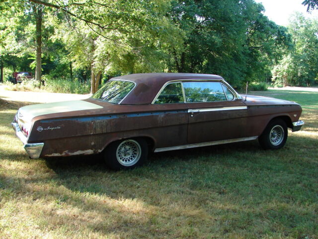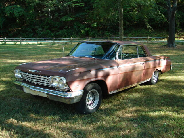 1962 IMPALA SUPER SPORTThe car was found in a milk barn where it sat for many years. It has all its original sheet metal from the factory, even the trunk that looks yellow. The trunk was sprayed with epoxy primer and the rest was sprayed red primer. Never been repainted! The guy started sanding it and stopped. The rust on the outside is new surface rust. The man I bought it from pulled it home from the barn and it sat outside in the rain for a while. I keep it inside now.It has a very solid body. Except for a couple of spots in the floor on both ends of the floor brace, the floor is good. The trunk has two spots also.I bought both American made quarter skins made of thick gauge metal like the factory, not cheap, thin China stuff. If you don't see some trim, it's because it is missing. If you don't see it, I don't have it. It was in a barn full of cars and parts, and the man I got it from couldn't find it. It did not run, I put an HEI distributor in it, changed oil, replaced water pump, hoses, thermostat, new aluminum radiator. It fires right up and runs smooth, looks like it was rebuilt before it was parked. Engine number looks like it is a 283. I don't know if it is original, there isn't a VIN stamped in it. After all I did, I found that the freeze plug behind the driver's motor mount has a rust hole. It runs and drives around the yard. I didn't go any farther on it. It needs brakes, lights, etc. done before you can drive it into town.Please call with any questions. Thanks, Mike 479 228 4304.