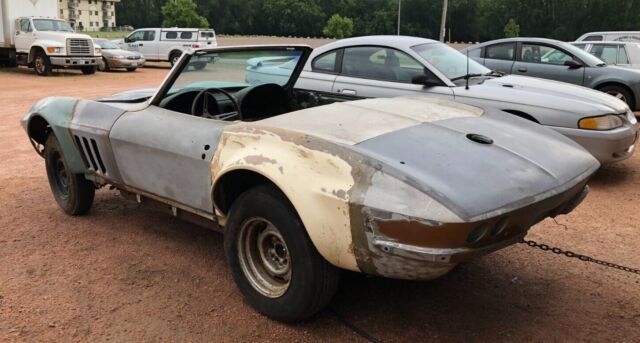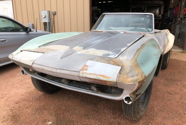 1966 CORVETTE HARDTOP ONLY 327/350 4 SPEED PROJECT CAR. LAST LICENSED IN 1976, WHEN IT DISASSEMBLED FOR CUSTOMIZATION. THE ORIGINAL ENGINE WAS REBUILT & TRANSMISSION WAS REBUILT SEATS AND DOOR PANELS WERE REDONE IN BLACK BUTTON TUCK NAUGAHYDE AND THE OWNER ADDED FENDER FLARES TO CUSTOMIZE THE BODY. WE PURCHASED THE CAR SOME YEARS LATER, ALL APART AND MISSING SOME PIECES. ENGINE, TRANSMISSION AND REAR END (AM 3:36 POSI 4 SPEED) ARE NUMBERS MATCHING, SEE PIX. WE ACCUMULATED GM BODY PANELS TO RETURN THE BODY TO THE STOCK LOOK, AND ASSEMBLED ENGINE AND TRANS WITH NEW CLUTCH ETC. THE CAR IS A K19 CALIFORNIA EMISSIONS CAR. ORIGINALLY MOSPORT GREEN WITH A DARK GREEN INTERIOR. CARBURETOR, AIR PUMP SYSTEM AND EXHAUST MANIFOLDS ARE MISSING, AS IS THE TURN SIGNAL SWITCH AND HOUSING, RADIO AND CLOCK. THE FRAME AND UNDERNEATH ARE GOOD BECAUSE ITS BEEN STORED SO LONG. THE MILES ARE NOT KNOWN AND WILL BE DISCLOSED AS UNKNOWN OR UNVERIFIED.WE ARE A WISCONSIN LICENSED USED CAR DEALER, SO ALL WI DOT FEES AND SALES TAX THAT APPLY WILL BE COLLECTED AT THE TIME OF SALE.
