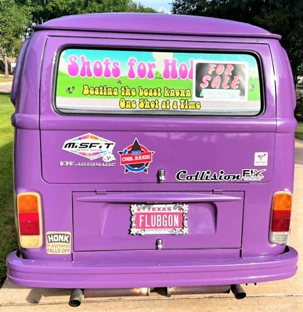 Offered, 1973 Volkswagen Bus/Vanagon / VW Transporter Type 2Comes with clean title and runs great. This VW has been kept in an enclosed garage and used on weekends 8 to 10 times out of the year to promote a Charity: It was just driven 15 miles last week with no issues. It has an automatic transmission, but no air. The odometer shows, but mileage is unknown. Engine= 4 cylinder, air-cooled, 1679cc. She does have eyelashes and the H emblem on the front was in place of the VW, I have the VW original emblem. We purchased it 6 years ago and have driven her about 200 - 400 miles a year for weekend events, I displayed her in my Christmas display last year and she was the Scooby Doo Christmas Machine, A huge hit with the kids and had 10,000 + come by and enjoy the display. The money will go back to the Charity and will be dispersed by the board, Please call 281 460 7261 for more information and we live in Cypress, Tx.Paint= PurpleBody= Minimal rust & dingsParts= Most originalSpare tireSeat belts intact & functional in front two seatsCouch seats are in good shapeAdded Tile on interiorI'm looking for a simple transaction. Looking for a VW lover & collector who wants to fix her up right & not part her out. She needs to go to a good home!Bus is an excellent condition for her age & is a great candidate for restoration.Please feel free to ask any questions for more information & I will get back to you ASAP.Buyer will be responsible for all shipping costs or can pick up locally in Houston, Texas. Would prefer it be seen by buyer and picked up locally.
