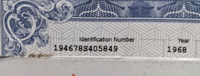 | Year: | 1968 | VIN (Vehicle Identification Number): | 194678S405849 |